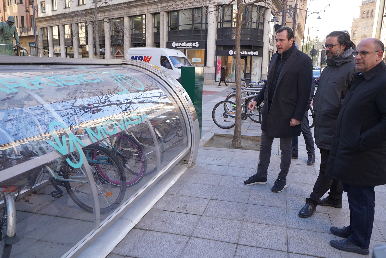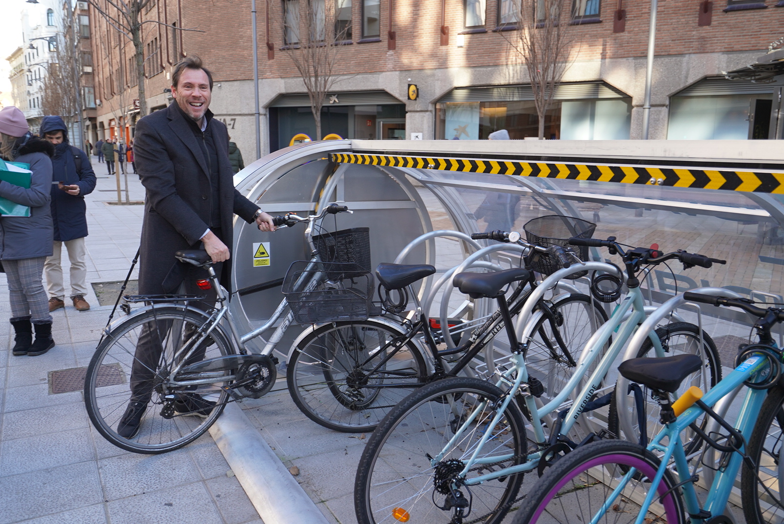 El alcalde de Valladolid, Óscar Puente, y el concejal de Movilidad y Espacio Urbano, Luis Vélez, han visitado hoy el parkibici de la calle Doctrinos para comprobar el funcionamiento del servicio: "Parkibici es un paso más en la estrategia de movilidad ciclista de la ciudad que colocará a Valladolid en los máximos estándares de calidad de las ciudades europeas".