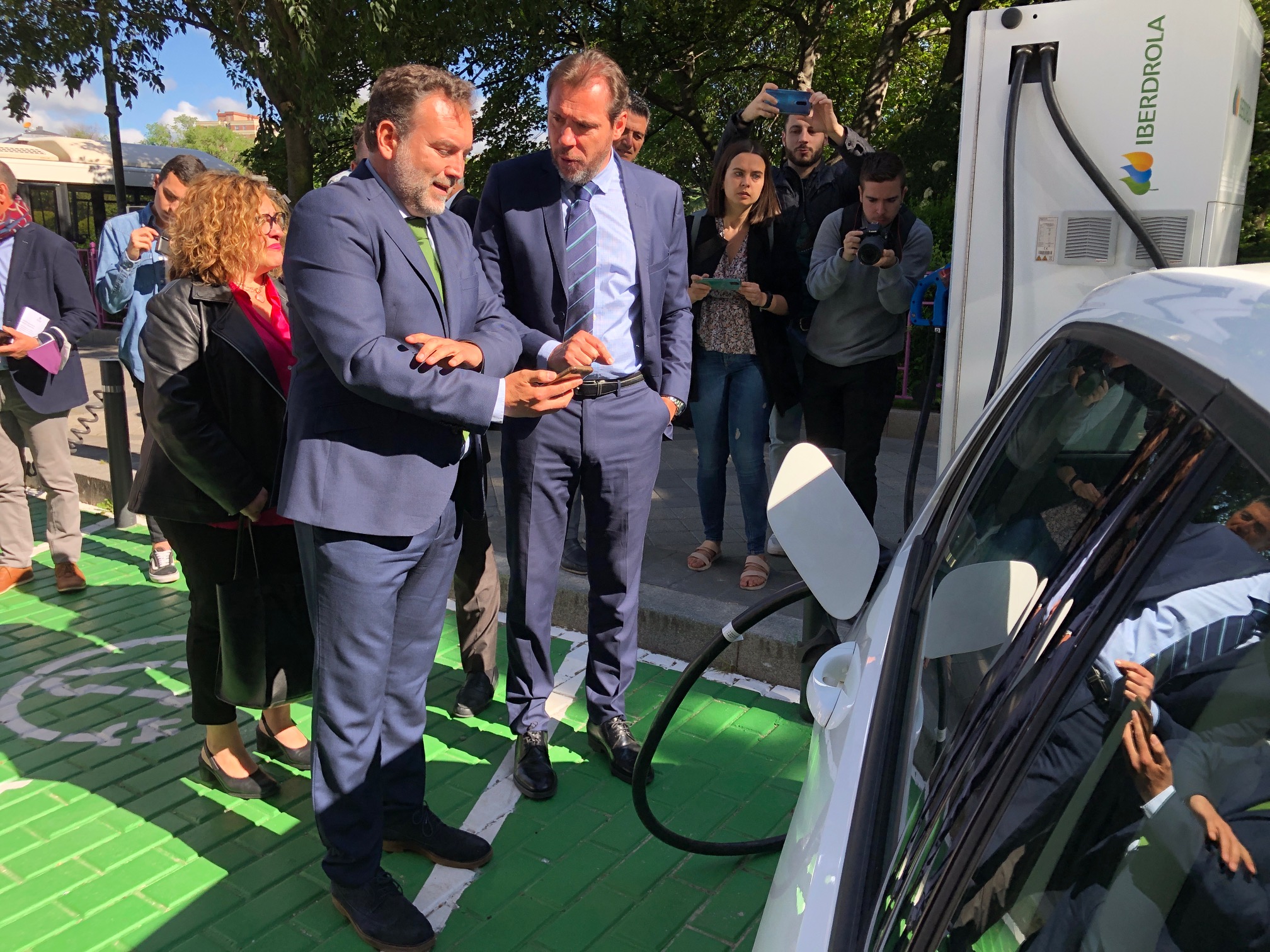 Al acto de presentación han acudido el alcalde de Valladolid, Óscar Puente, la concejala de Innovación, Desarrollo Económico, Empleo y Comercio, Charo Chávez y el delegado de Iberdrola en Castilla y León, Miguel Calvo, que han explicado el funcionamiento de la instalación y han presentado la red de recarga de vehículos eléctricos desplegada en la capital vallisoletana.