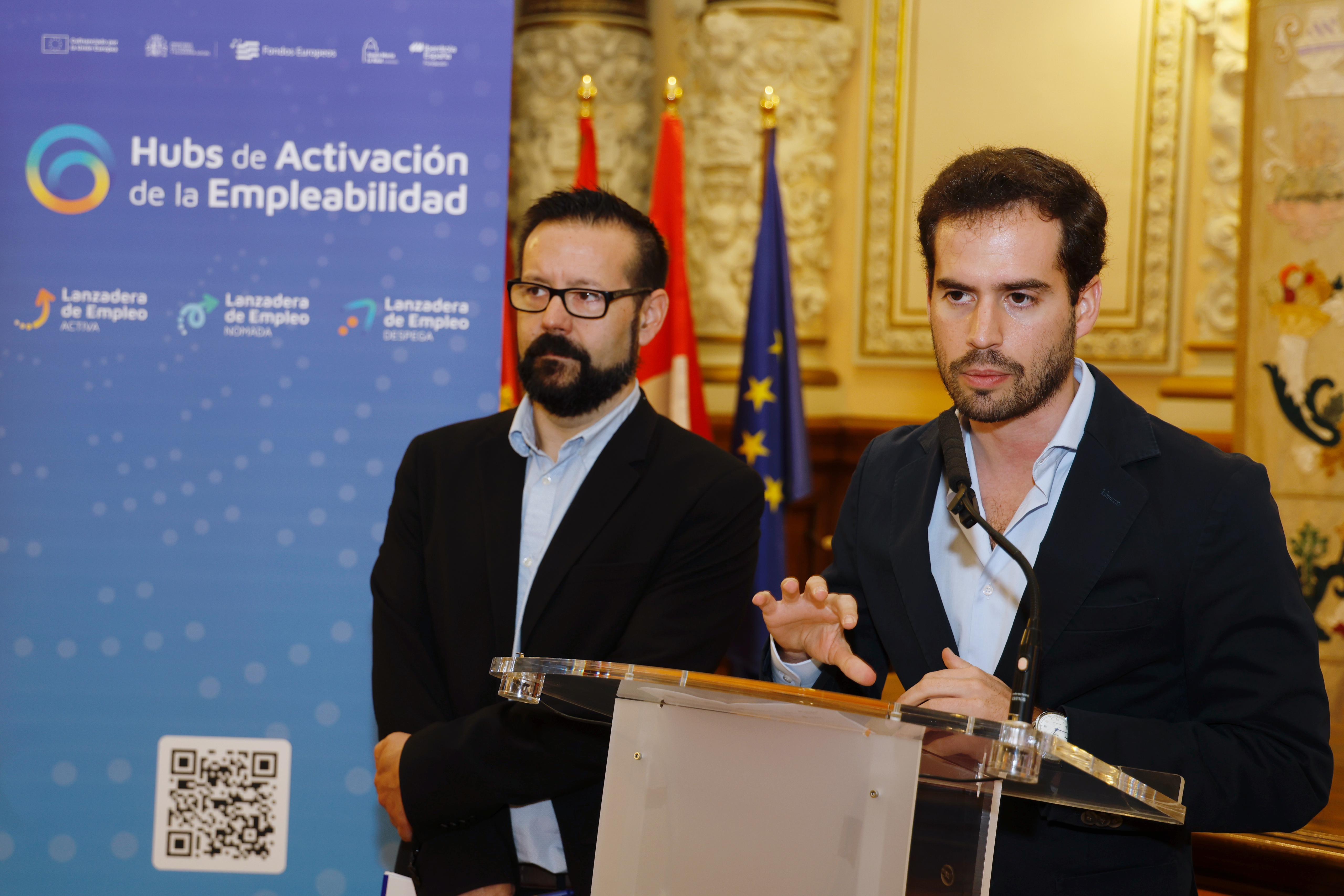 El concejal de Personas Mayores, Familia y Servicios Sociales del Ayuntamiento de Valladolid, Rodrigo Nieto, acompañado por Álvaro Retortillo, director general de la Fundación Santa María la Real, y Teresa Rodríguez de Tembleque, responsable de Acción Social y Formación e Investigación de la Fundación Iberdrola España, ha presentado esta mañana un convenio de colaboración que permitirá impulsar el programa ‘Hubs de Activación de la Empleabilidad’ en la ciudad.