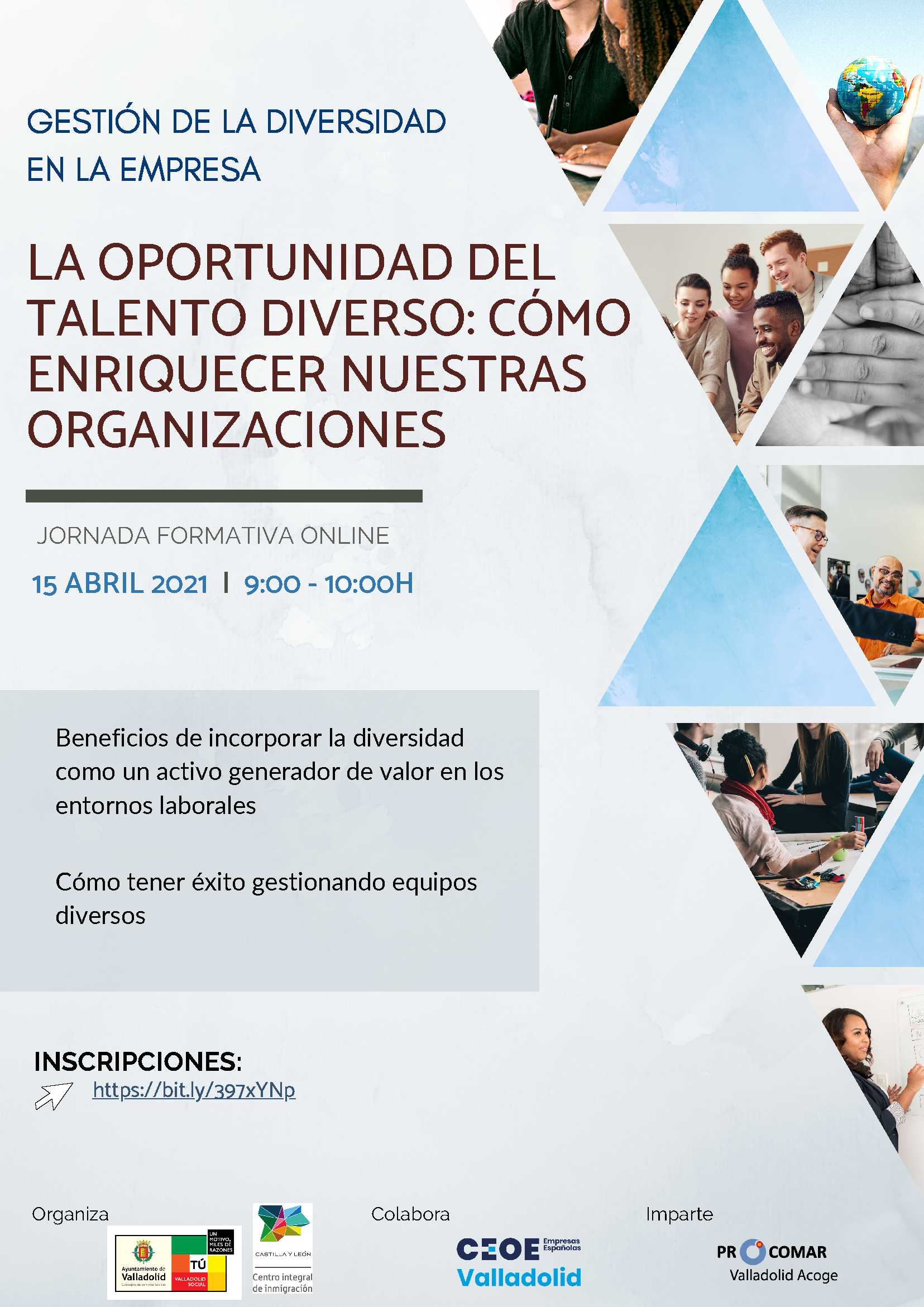 Aprovechar la diversidad. Este es uno de los objetivos del Plan Municipal de Convivencia Ciudadana Intercultural que desarrolla la Concejalía de Servicios Sociales y Mediación Comunitaria en distintos ámbitos. Hoy se celebra un encuentro online "La oportunidad del talento diverso: cómo enriquecer nuestras organizaciones", actividad desarrollada por el Ayuntamiento con la colaboración de la CEOE Valladolid. En este encuentro se ofrecerá a las empresas de la ciudad un espacio de formación y trabajo compartido en torno al presente y futuro de la gestión de la diversidad cultural. Esta iniciativa ha tenido una acogida muy favorable ya que se han inscrito más de treinta empresas.