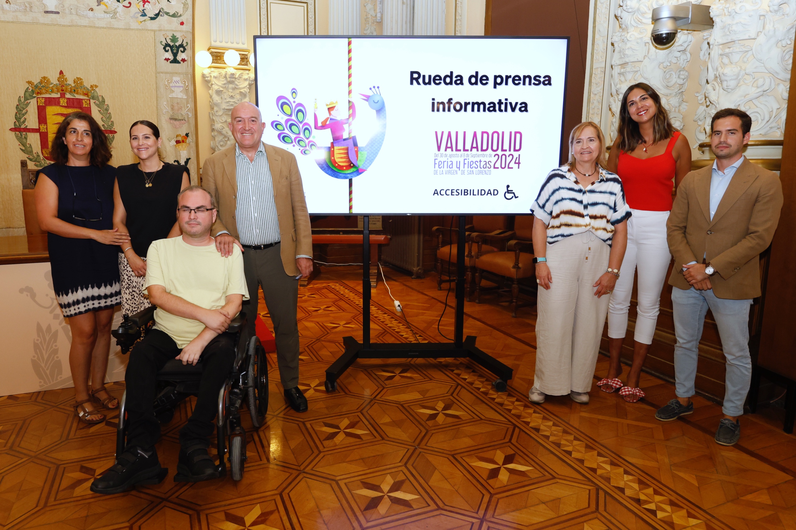 El alcalde de Valladolid, Jesús Julio Carnero, ha presentado hoy junto a la concejala de Turismo, Eventos y Marca Ciudad, Blanca Jiménez, y el concejal de Familia, Personas Mayores y Servicios Sociales, Rodrigo Nieto, las novedosas actuaciones en materia de accesibilidad que ha implementado el Ayuntamiento de cara a la Feria y Fiestas de la Virgen de San Lorenzo, que se desarrollará entre el 30 de agosto y el 8 de septiembre, con el propósito de que todos los vallisoletanos puedan disfrutar de las celebraciones en honor a la patrona de la ciudad sea cual fuere su condición.