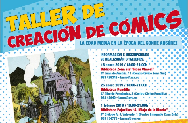 Taller de Creación de Cómics "la edad Media en la época del Conde Ansúrez dirigidos a chicas y chicos de 12 a 17 años. Los talleres los imparte Manuel Vicente Tamariz