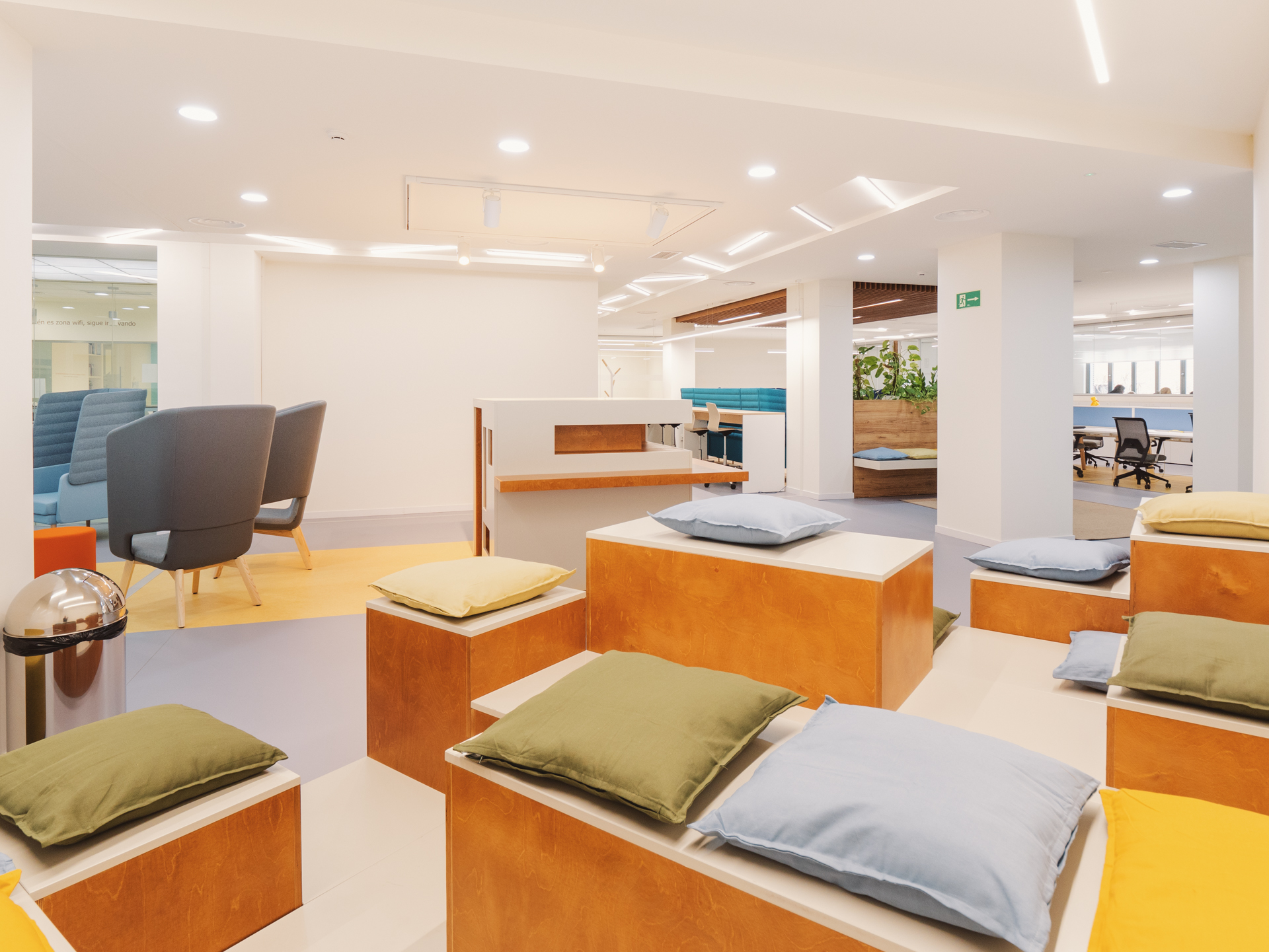 - 16 puestos de trabajo equipados con mesas, sillas ergonómicas y taquillas individuales.