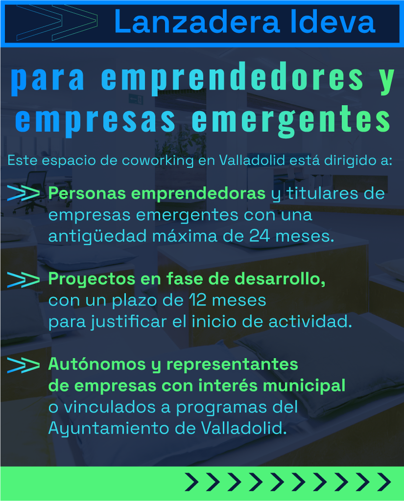 Será necesario el empadronamiento en Valladolid o en municipios de la MIG. Se admite un máximo de 4 personas por entidad, y dos años en el coworking, con posible prórroga de un año.
