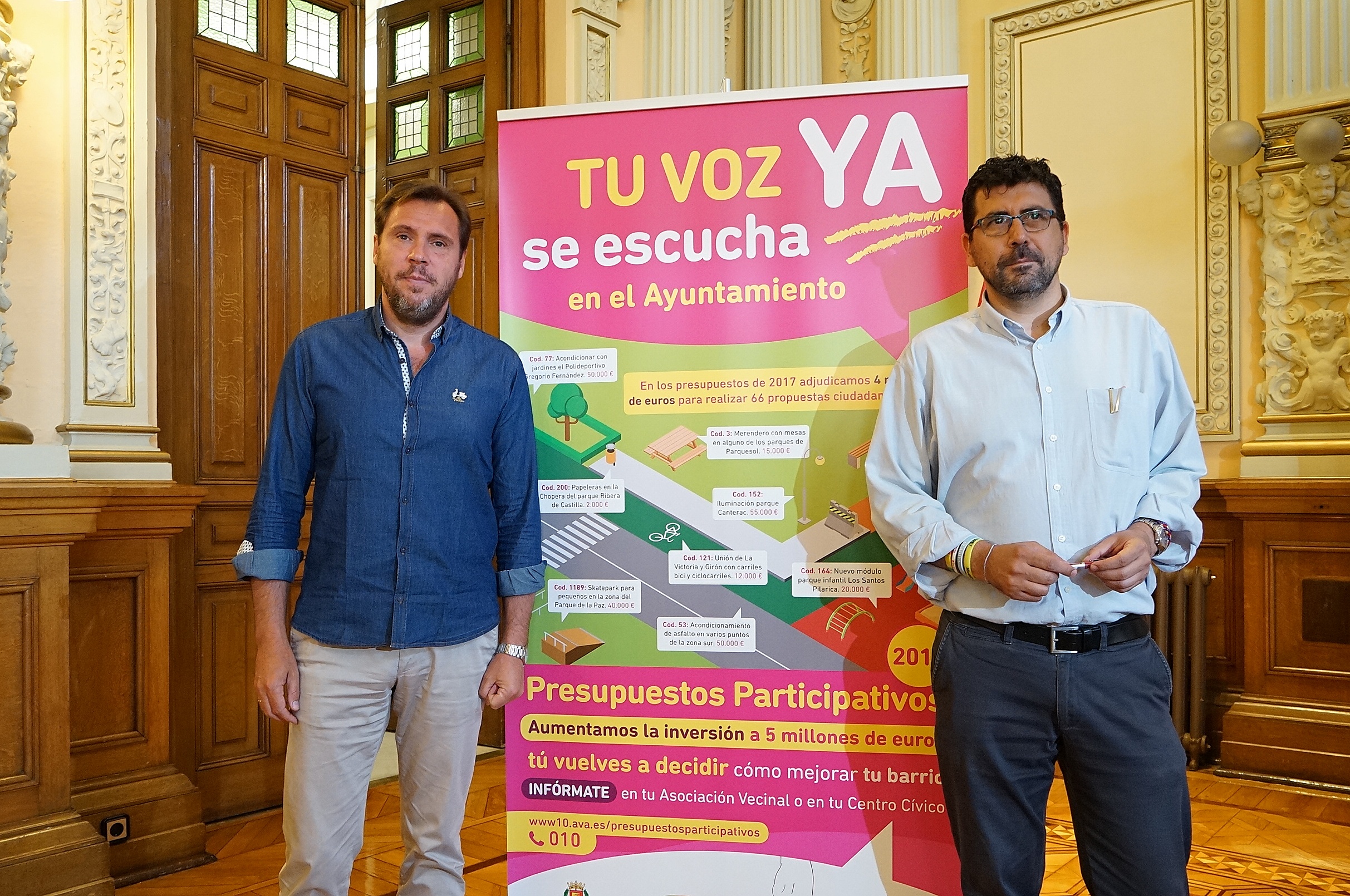 El alcalde de Valladolid, Óscar Puente, y el concejal de Participación Ciudadana, Alberto Bustos, han presentado, esta mañana, los resultados de ese proceso de votación en el que han participado 10.889 personas con el resultado final de 103 propuestas seleccionadas por un valor de 4.587.152 euros.