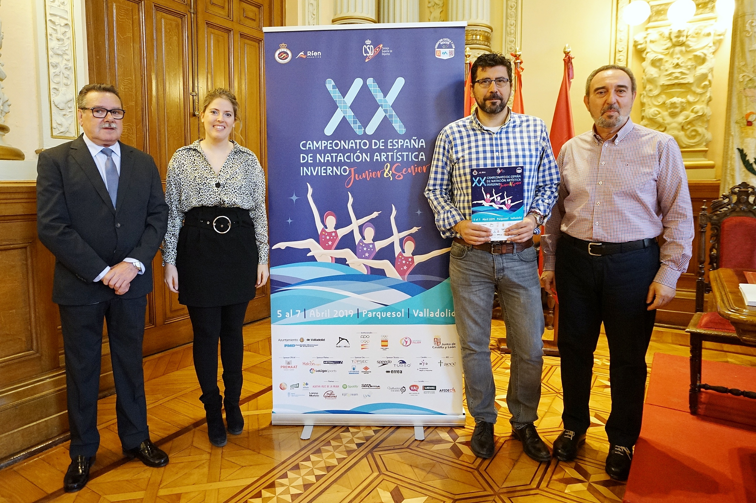 El concejal de Deportes, Alberto Bustos, acompañado del presidente de la Federación de Natación de Castilla y León, Antonio García Carbajo, el vicepresidente del Club de Natación Fabio Nelli, Raúl Albillo, y la entrenadora del club Fabio Nelli y medallista olímpica, Laura López, han presentado el campeonato. Ésta última ha explicado la importancia de celebrar en Valladolid, en la piscina de Parquesol, este campeonato.