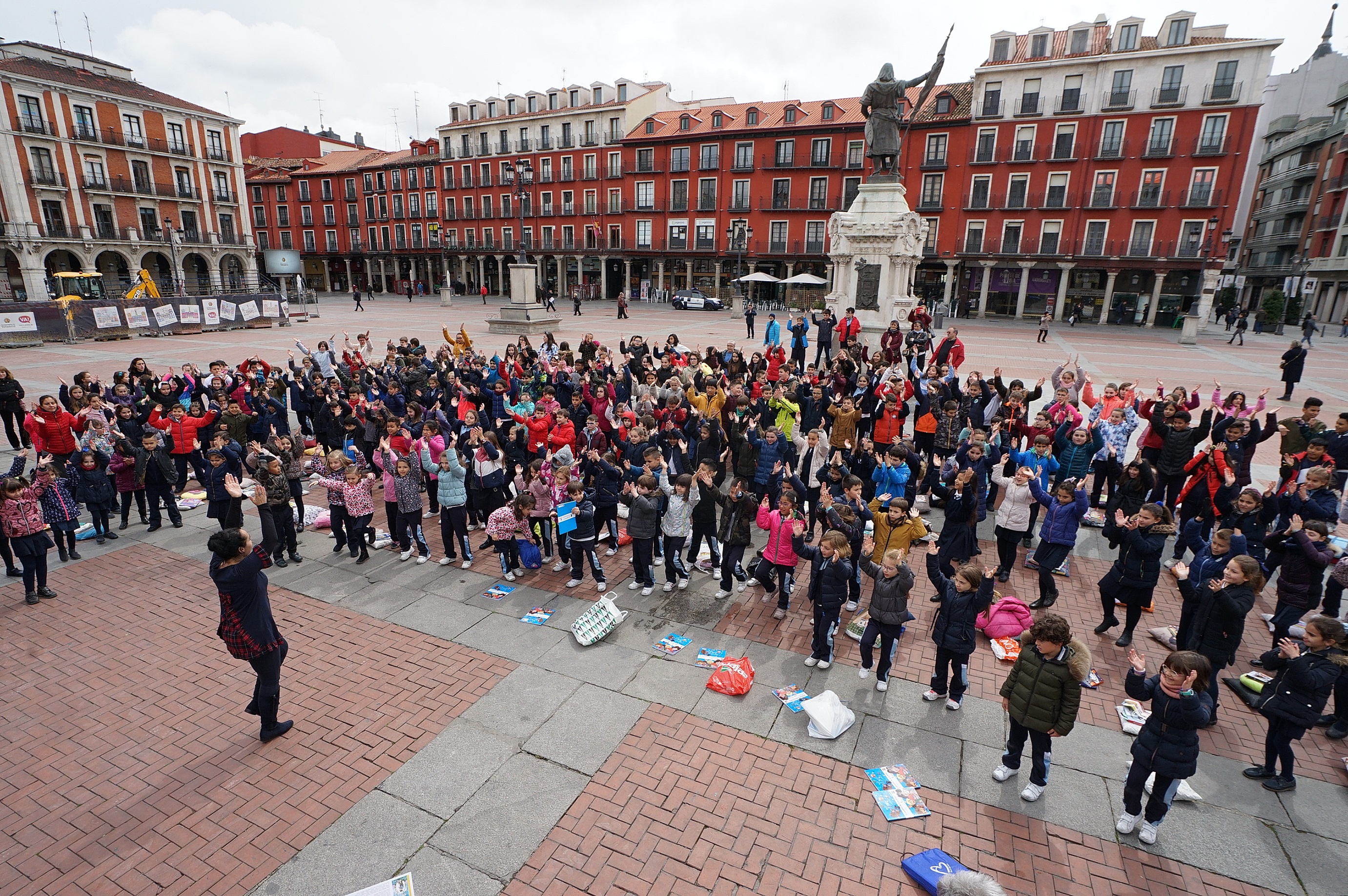 La IV Velada Literaria del Colegio Amor de Dios reúne a alumnos y familias en la Plaza Mayor de Valladolid para realizar un manifiesto intergeneracional a favor de la lectura