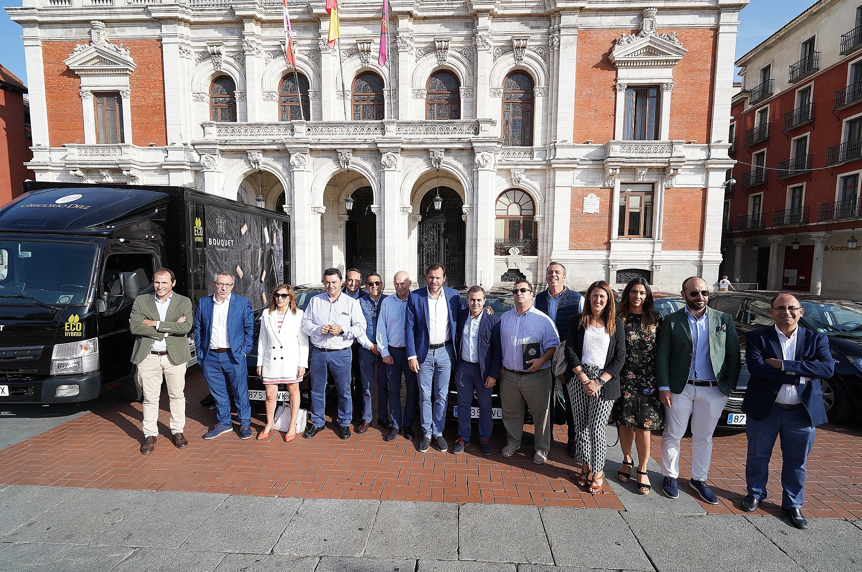 El alcalde, Óscar Puente, y el concejal de Movilidad y Espacio Urbano, Luis Vélez, han presentado junto al director comercial del Grupo distribuidor Gregorio Díez, Óscar Díez, la nueva flota de vehículos sostenibles de esta empresa.