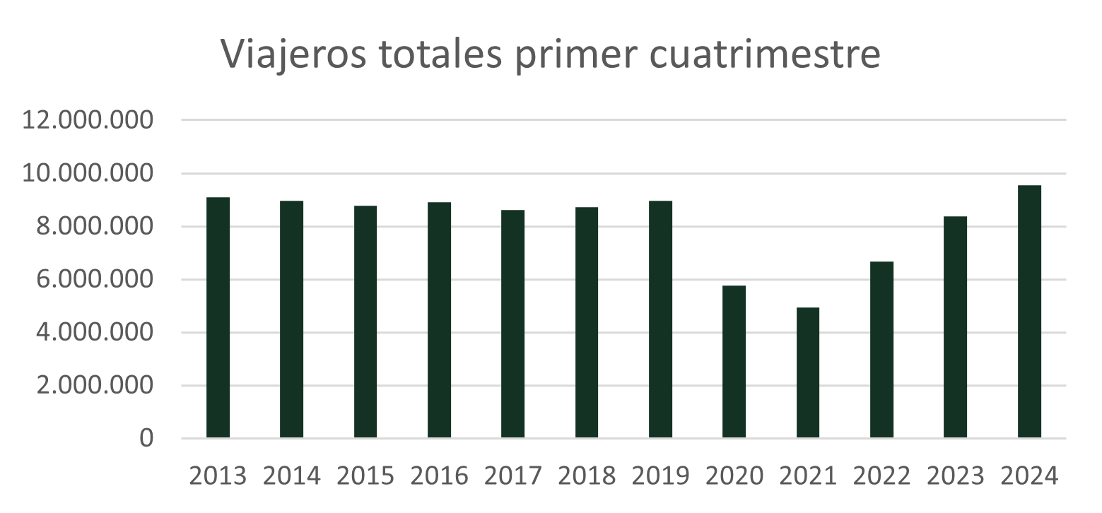 • Se trata del mayor valor de viajeros transportados en este periodo desde el año 2013.
