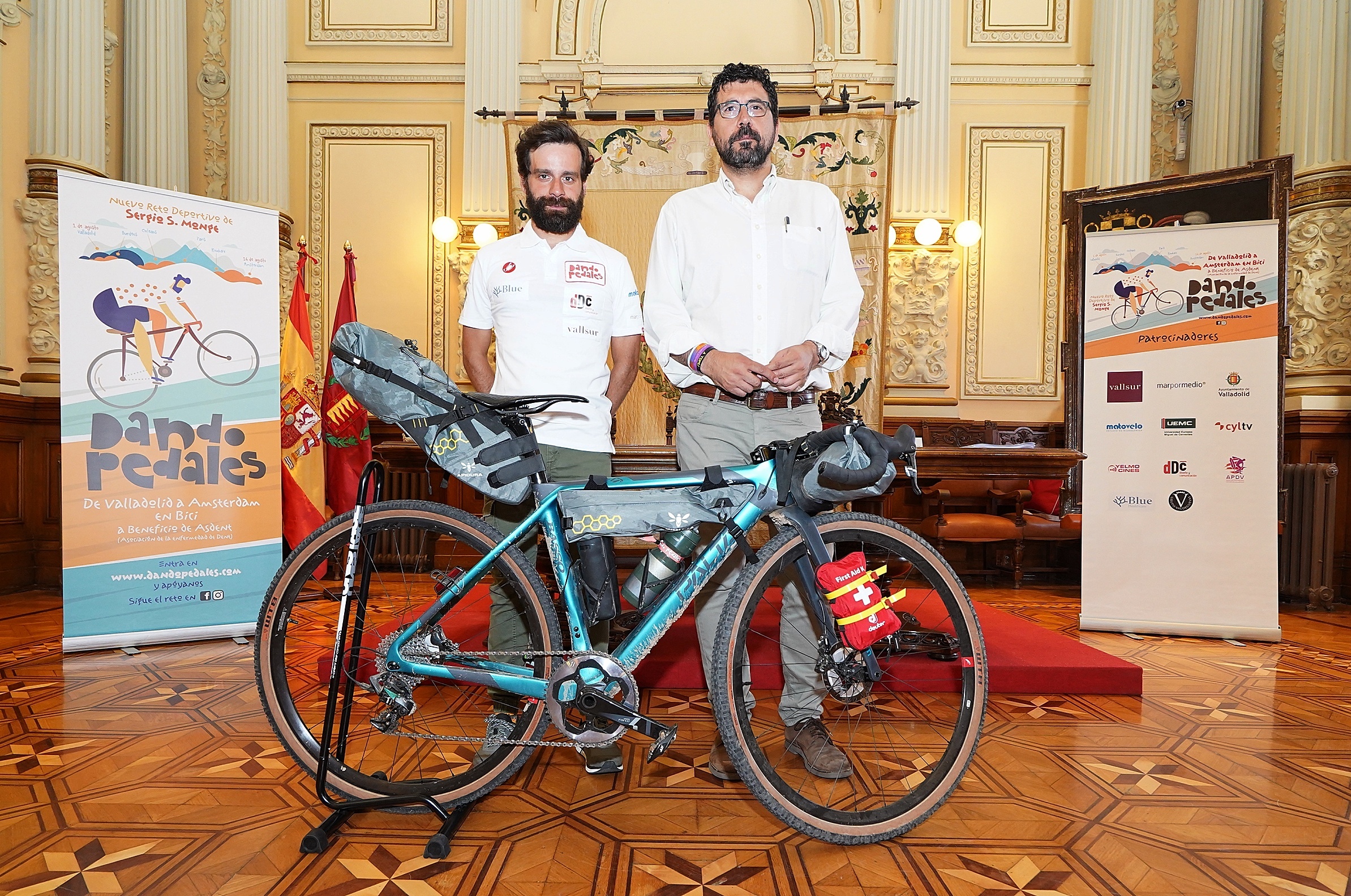 El concejal de Participación Ciudadana, y Deportes, Alberto Bustos, ha presentado esta mañana en el Salón de Recepciones del Ayuntamiento el reto ciclista solidario De Valladolid a Ámsterdam en bici junto al presidente de la asociación Dando Pedales, Retos, Solidaridad, Sergio S. Monge, a beneficio de la investigación médica para ASDENT.