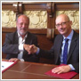El alcalde de Valladolid, Francisco Javier León de la Riva, y el presidente del Colegio Territorial de Administradores de Fincas Rústicas y Urbanas de Valladolid, Salvador Díez Lloris durante la firma del convenioImagen en alta resolución. Este enlace se abrirá mediante lightbox, puede haber un cambio de contextoEl alcalde de Valladolid, Francisco Javier León de la Riva, y el presidente del Colegio Territorial de Administradores de Fincas Rústicas y Urbanas de Valladolid, Salvador Díez Lloris durante la firma del convenio