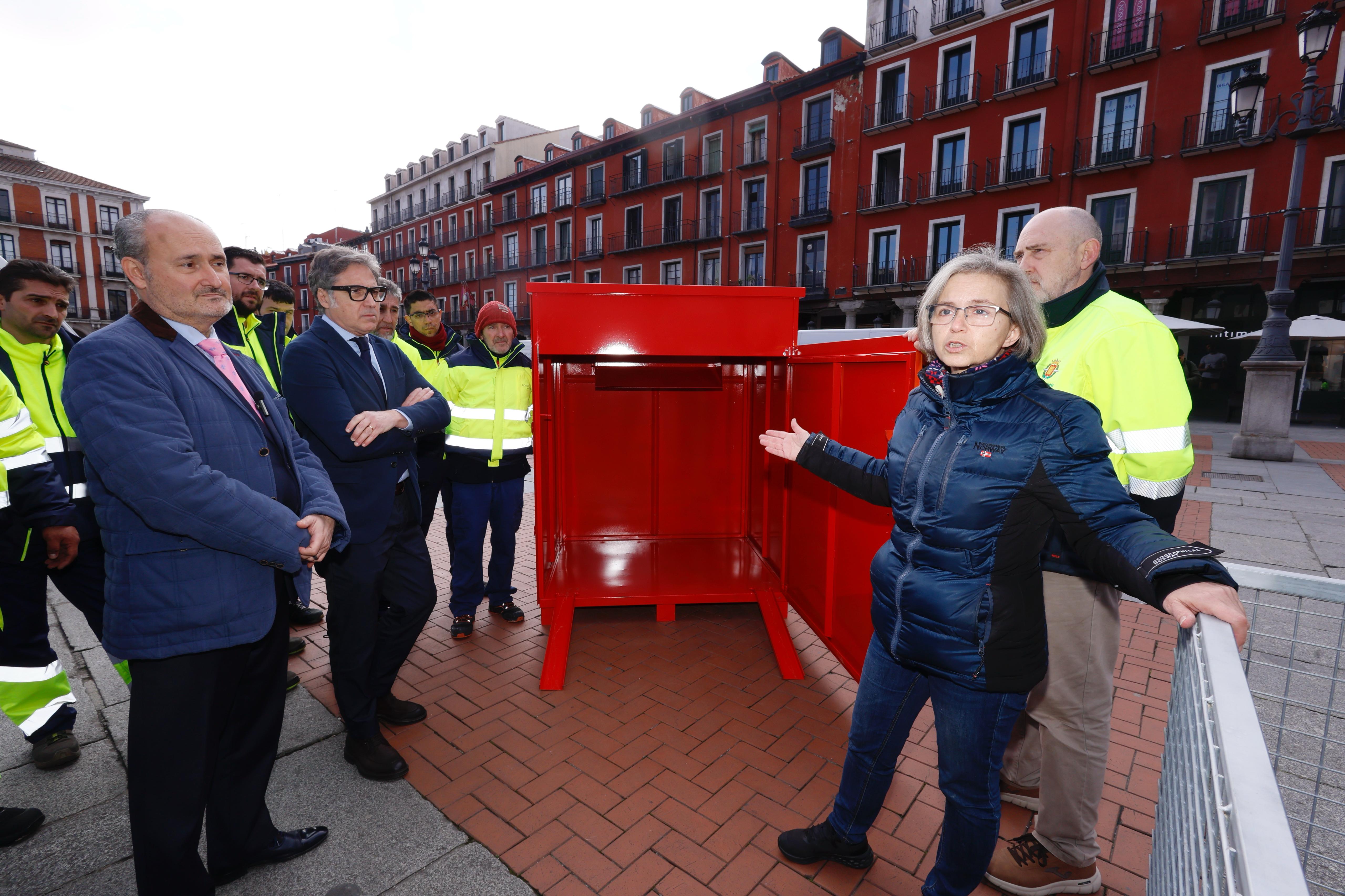 El concejal de Salud Pública y Seguridad Ciudadana, Alberto Cuadrado, ha presentado hoy el nuevo servicio de recogida de la fracción textil en Valladolid, junto al presidente de Cáritas Diocesana de Castilla y León, Guenther Eduardo Boelhoff; el presidente del Consejo Provincial de la Orden Hospitalaria San Juan de Dios, José María Bermejo, y responsables del Servicio de Limpieza del Ayuntamiento de Valladolid.