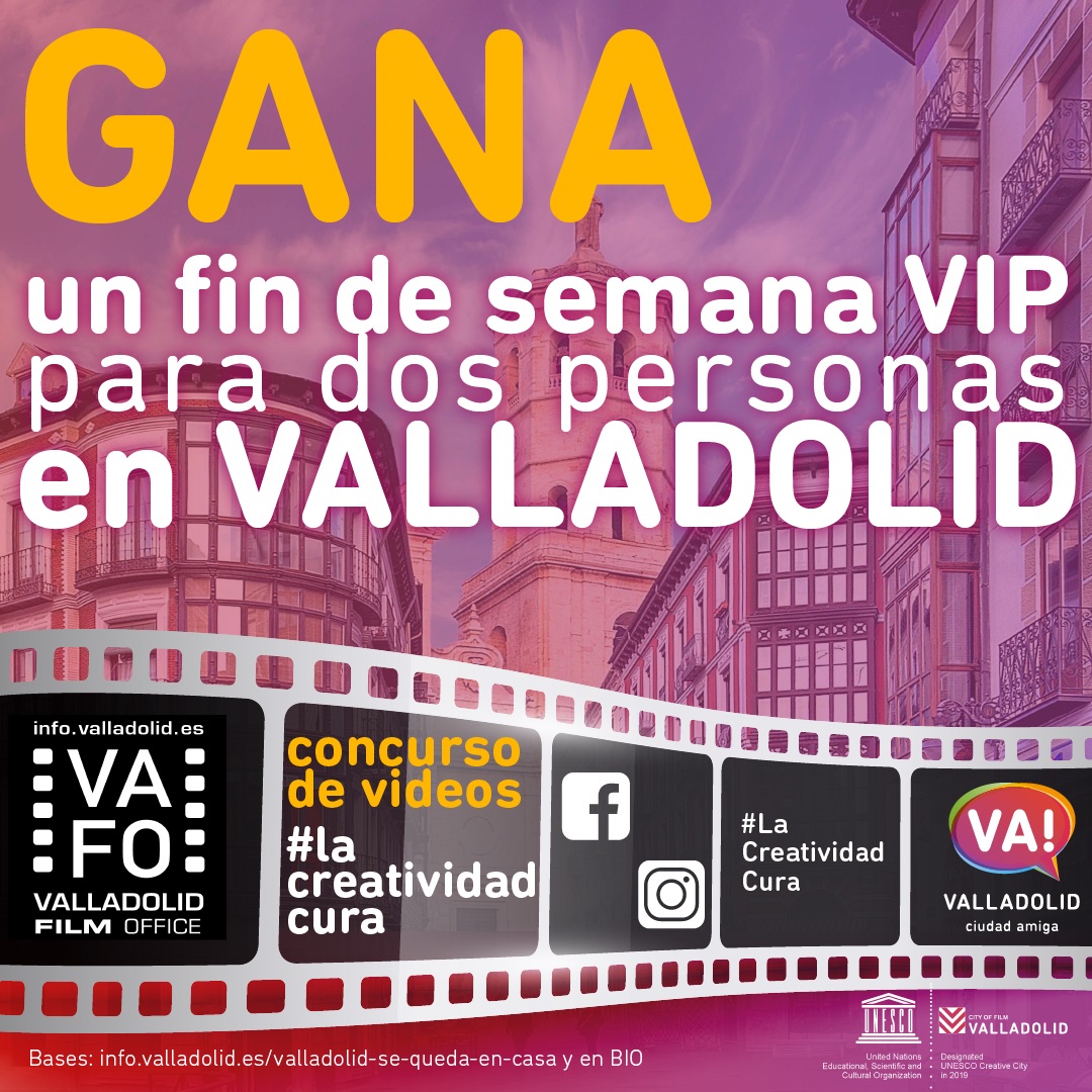 Por otro lado, ya está en marcha otro concurso, en esta ocasión a través de Facebook e Instagram y destinado a los amantes del cine. Bajo el hashtag #LaCreatividadCura y aprovechando la designación de Valladolid como Ciudad Creativa de Cine de la Unesco, se premiará a los mejores videos, de máximo un minuto de duración, grabados desde casa y en los que se hable de cómo se vive este tiempo de confinamiento. El premio en esta ocasión es un fin de semana con todos los gastos pagados en la ciudad.