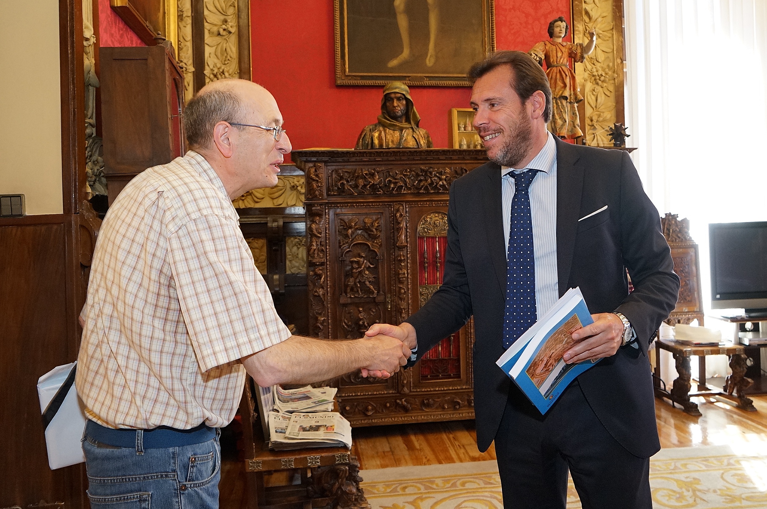El alcalde, Óscar Puente, han presentado, esta mañana en el Ayuntamiento, la publicación "El Ferrocarril en la ciudad de Valladolid (1858-2018)", del autor Pedro Pintado Quintana, presidente de ASVAFER.