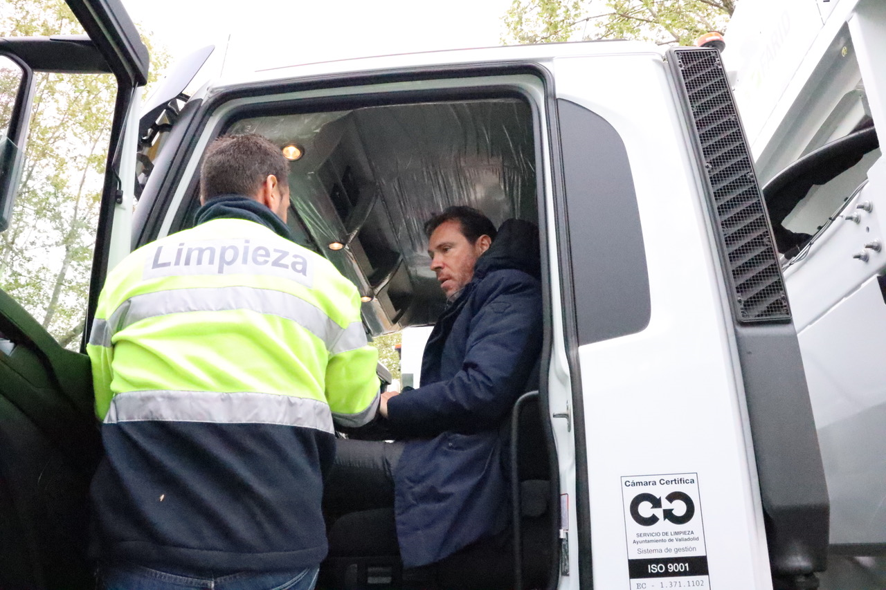 La incorporación de 6 nuevos camiones para recogida de residuos confirma la apuesta del Ayuntamiento de Valladolid por la mejora del Servicio de Limpieza, según se ha destacado el alcalde, Óscar Puente, en el acto de presentación, junto al consejero de la Presidencia, Jesús Julio Carnero, y el concejal de Salud Pública y Seguridad Ciudadana, Alberto Palomino.