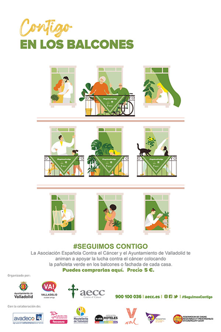 Por su parte, el presidente de la AECC Valladolid, Artemio Domínguez, ha señalado que "durante el confinamiento los balcones se convirtieron en un espacio de comunicación. En los días que tendríamos que estar de fiesta, los balcones se convertirán en espacios de solidaridad, con el mensaje de '#SeguimosContigo', mediante el cual Valladolid mostrará su apoyo a las personas con cáncer y a sus familiares. El dinero recaudado por la compra de la pañoleta se destinará íntegramente a la investigación oncológica".
