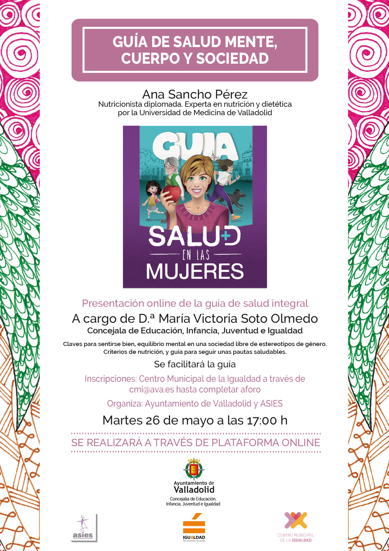 El Centro Municipal de la Igualdad ha organizado junto con la Asociación Igualdad es Sociedad (ASIES) la presentación la "Guía de Salud para Mujeres" que correrá cargo de la concejala de Educación, Infancia, Juventud e Igualdad, María Victoria Soto, a través de plataforma online mañana, martes 26 de mayo, a las 17 h.