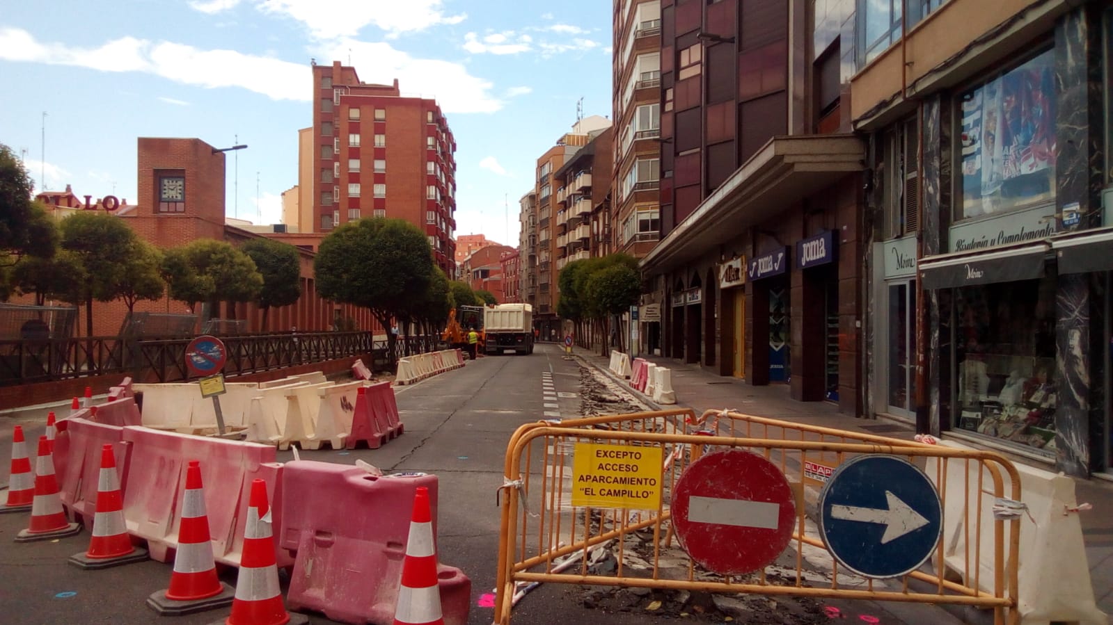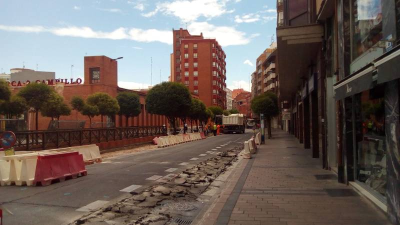 De este modo, la vía se va a configurar una disposición de un carril de sentido único y 3,50 m de anchura, doble línea de estacionamiento de 2,00 m de anchura cada una y aceras del resto de anchura, en todos los casos superiores a los 2,04 m. A mayores del itinerario peatonal principal en la fachada del mercado del Campillo, se construirá una acera inferior de servicio a las plazas de estacionamiento, que hoy no existe. La obra pretende resolver, o al menos mejorar, las dificultades altimétricas en esta parte de la calle, que padece algunos desniveles inconvenientes. Las aceras se pavimentarán con la baldosa de acabado granítico y 20x20 cm de dimensiones típica en la zona centro de la ciudad, y los estacionamientos con adoquín de hormigón. Se renovará con aglomerado asfáltico la capa de rodadura de la calzada y en hormigón fratasado las paradas de autobús. La ampliación de las aceras permitirá ampliar la alineación de arbolado ornamental a casi la totalidad de la longitud de la vía.