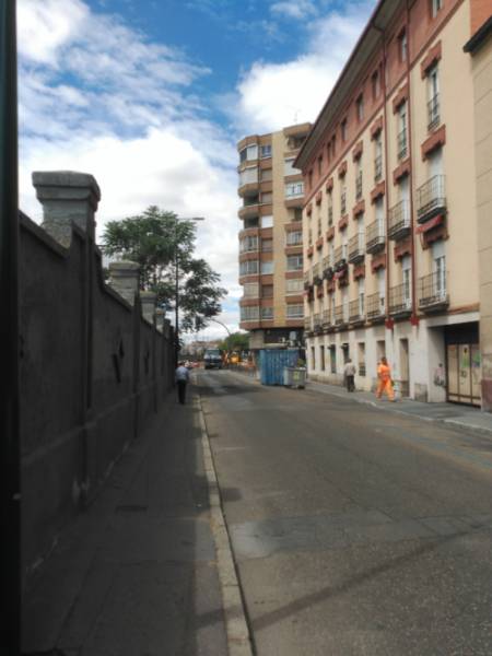 De manera similar a lo ejecutado en el tramo anterior, la actuación respetará la configuración del tráfico, el estacionamiento en línea y la posición de los pasos de peatones señalizados, limitándose a la ampliación de la anchura de la acera, pasando ésta a tener entre 3,25 y 4 m, a costa de la calzada, excesivamente amplia para su uso. En esta ocasión sí se hace desaparecer el doble carril que existe entre la calle de los Panaderos y la de los Labradores, sustituyéndose por un estacionamiento en línea también en el lado de la tapia de las vías. Las cotas relativas de las batientes (puertas y accesos de los edificios) y de la calzada siguen obligando entre Panaderos y Labradores, como en el tramo anterior, a configurar una banda exterior elevada en la acera para permitir su correcto drenaje, que limitará algo la anchura útil final de la acera. Pasada la calle de los Labradores esta necesidad desaparece y, como por otra parte la vía es algo más estrecha, el arbolado se plantará interrumpiendo la línea de estacionamiento en vez de en la acera.
