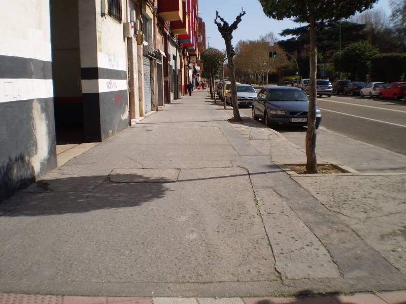 La obra consiste en una simple sustitución del pavimento deteriorado y obsoleto de esta acera de asfalto fundido por baldosa de acabado pétreo y de dimensiones 30 x 30 cm. No se altera el trazado y dimensiones de la acera, por lo que ni siquiera llega a sustituirse su bordillo.