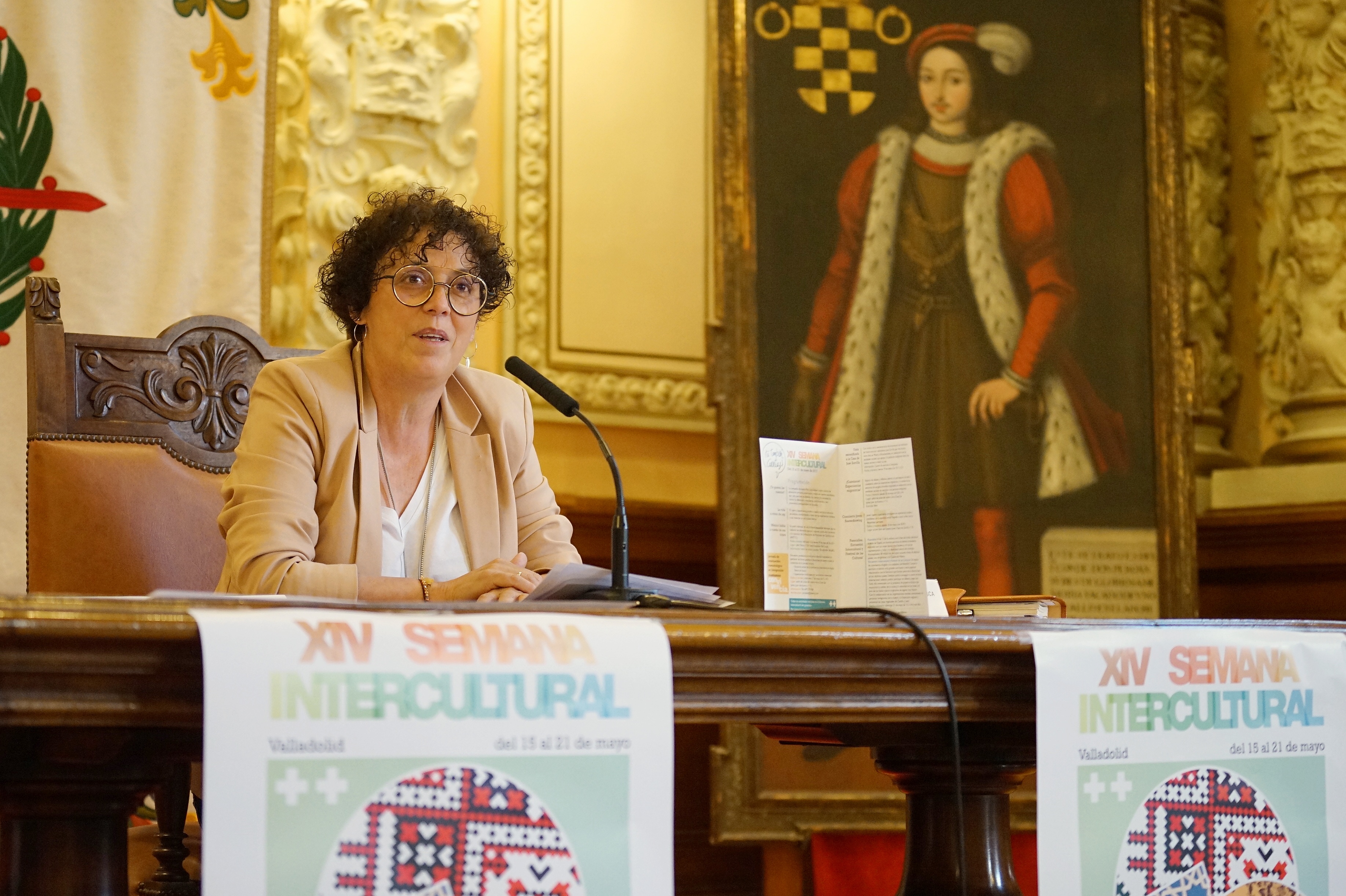 La concejala de Servicios Sociales, Rafaela Romero, presentó hoy en la Casa Consistorial la XIV Semana Intercultural, un evento lúdico y cultural de encuentro entre vecinos de la ciudad procedentes de distintos países, enclavado en la programación del Ayuntamiento de Valladolid.