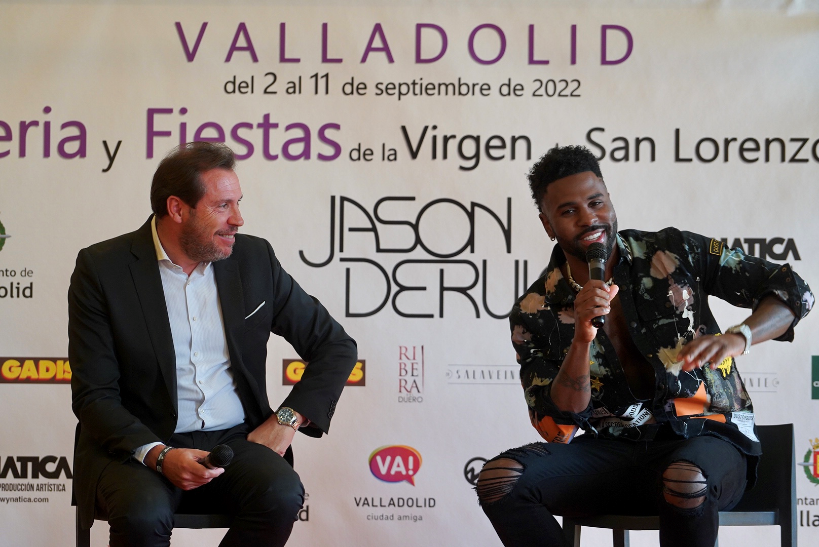 "Nunca he estado en unas fiestas y nunca he estado en su sitio como éste y para mí es un honor actuar aquí; me encanta actuar en sitios lejanos a mi país de origen y sentir todo el cariño y todo el calor que la gente me está mostrando en la ciudad". Así ha comenzado Jason Derulo la rueda de prensa que ha ofrecido en el Salón de Recepciones del Ayuntamiento de Valladolid.