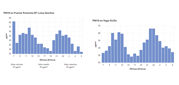 En las gráficas se observa cómo se produce ese aporte de material a partir de las 00:00 y 1:00. Estos ascensos no son coherentes con episodios relacionados con el tráfico, por lo que se concluye que se están recibiendo partículas del exterior, confirmando la predicción de los modelos.