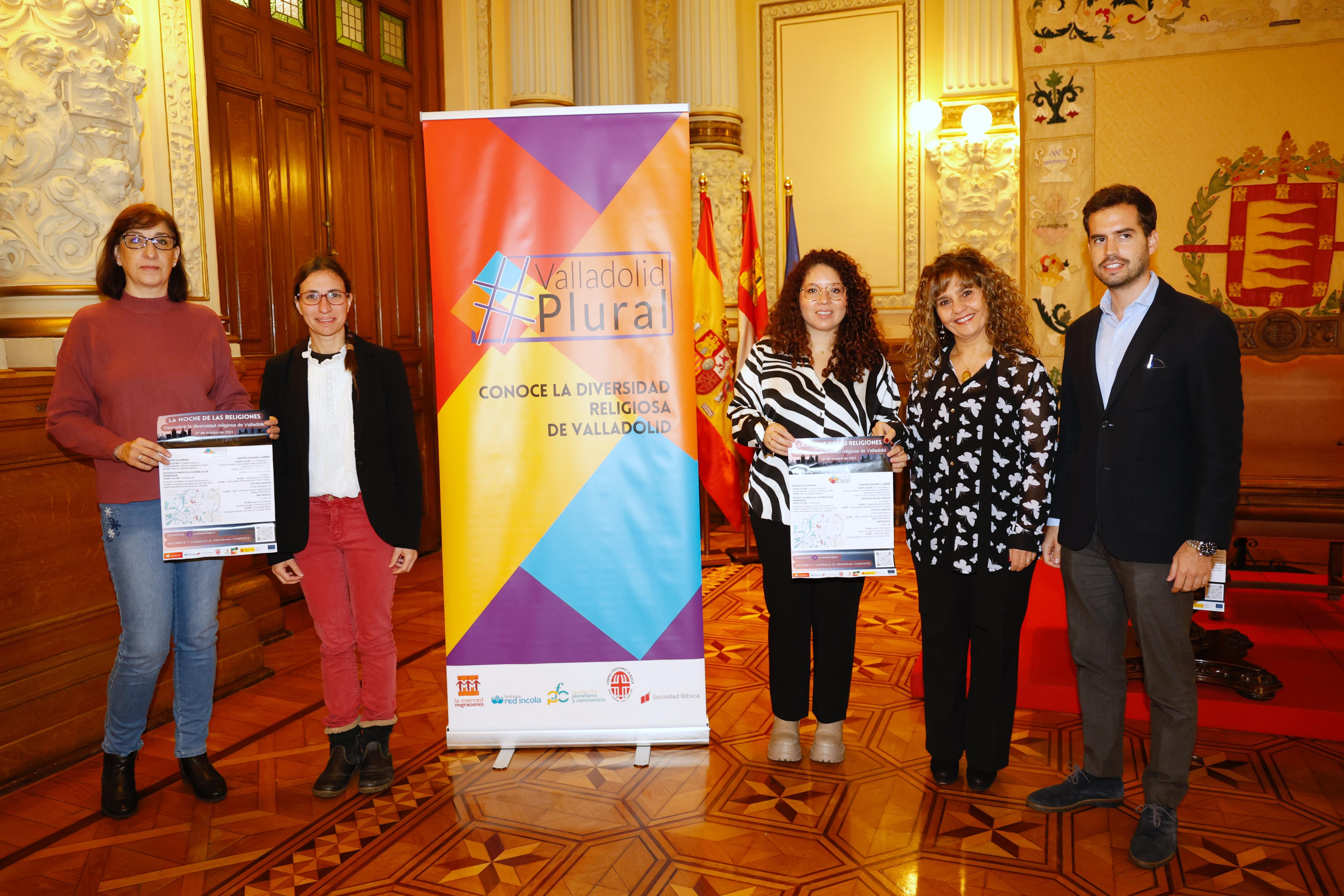 El concejal de Personas Mayores, Familia y Servicios Sociales, Rodrigo Nieto, ha presentado junto a la portavoz de #ValladolidPlural y responsable de Sensibilización y Comunicación de Red Íncola, Silvia Rivas, "La Noche de las Religiones", enmarcada en la quinta edición del proyecto #ValladolidPlural2023, que comenzará hoy mismo, 25 de octubre, en el Espacio Joven Norte (C/ Olmo, 61), a partir de las 18:00 horas, con la mesa redonda "El cuidado del planeta desde la diversidad religiosa", en la que participaran jóvenes de distintas creencias y convicciones (evangélicos, musulmanes y católicos).