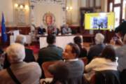 El alcalde de Valladolid, Jesús Julio Carnero, acompañado de los investigadores Óscar Burón Rodrigo y Luis Vasallo Toranzo; y el catedrático de la Universidad de Valladolid Jesús Urrea Fernández, ha participado esta mañana en el acto de presentación de ‘El Valladolid de Entrambas Aguas’, nueva publicación que se integra en la Colección de Publicaciones Municipales con el número 53.
