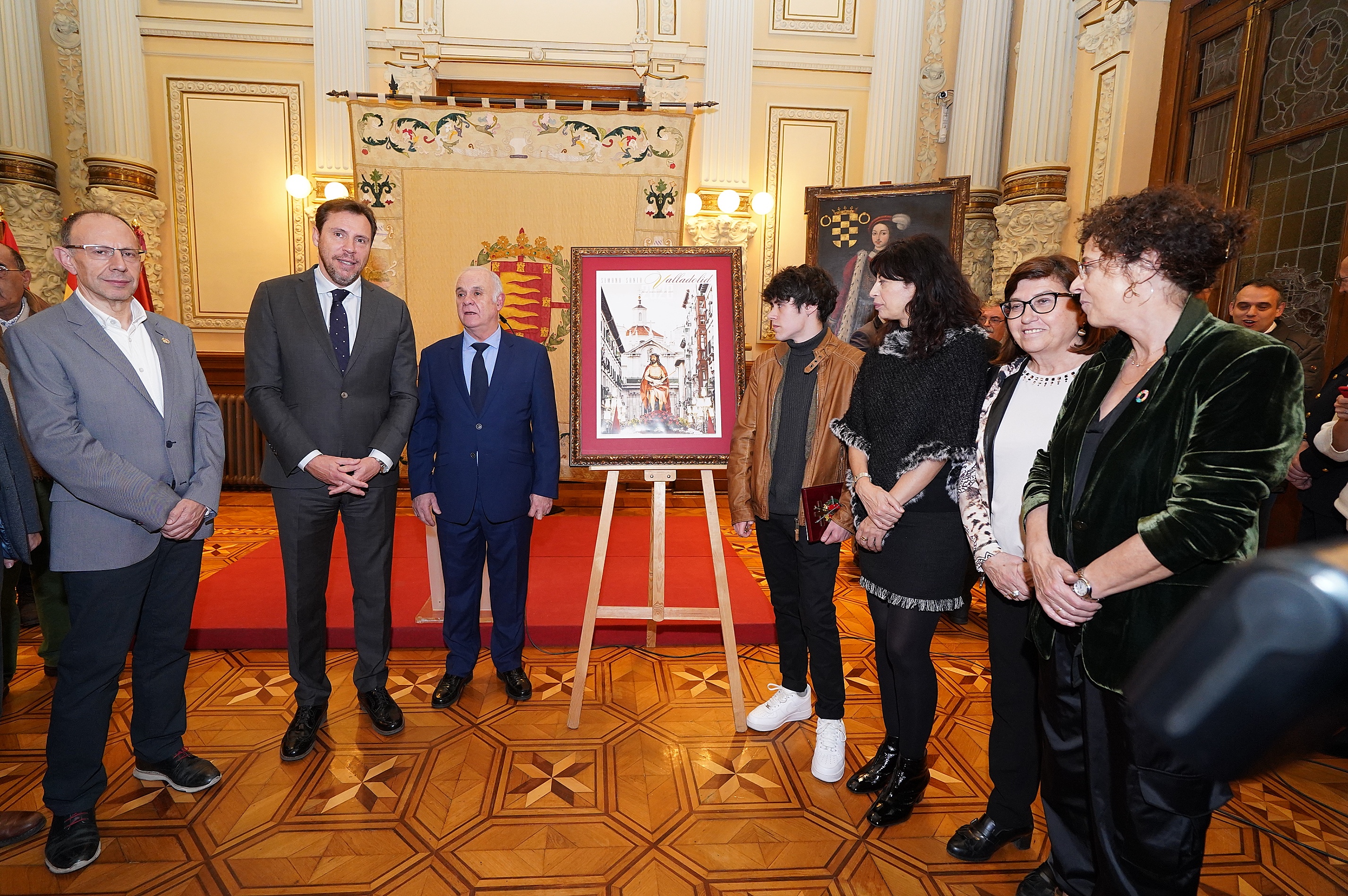 El Salón de Recepciones ha acogido el acto de presentación del cartel que anunciará la Semana Santa vallisoletana de este año 2020 y el nombre de quien, en la Santa Iglesia Catedral, pregonará las celebraciones que tendrán lugar en esas jornadas tan especiales para la ciudad.