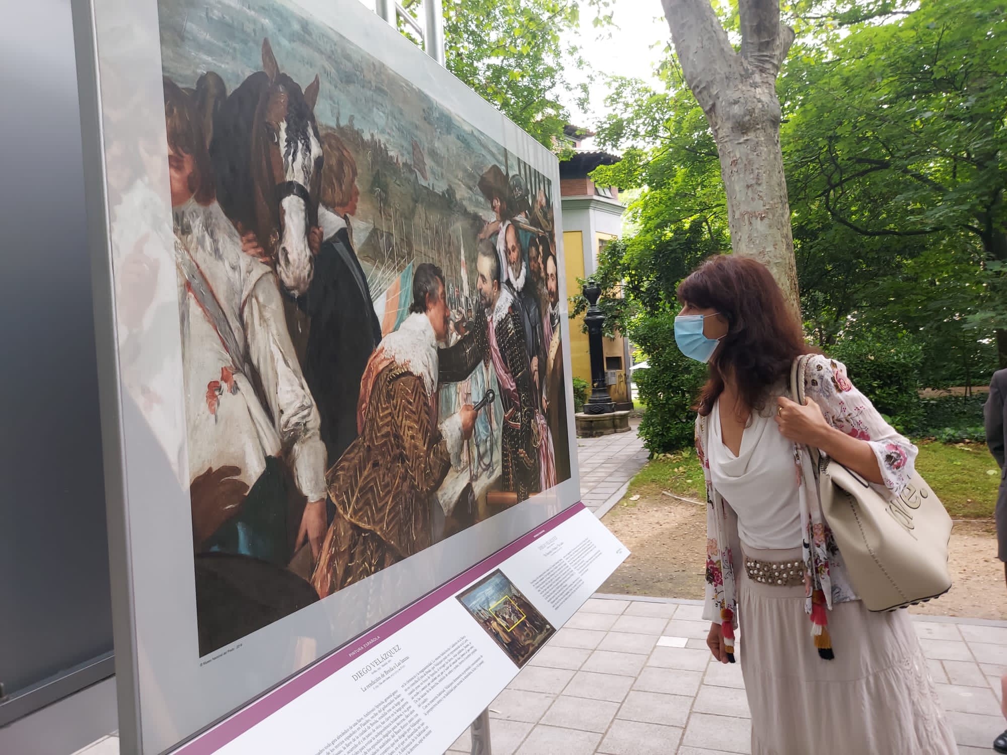 La muestra, que estará disponible en el Paseo del Príncipe del Campo Grande hasta el 5 de julio, recoge cincuenta pinturas en sus dimensiones reales y permite conocer parte de las colecciones y el patrimonio histórico del Museo del Prado. En concreto, se han elegido medio centenar de las obras más relevantes de la Colección Permanente del Museo con representación de pinturas de la escuela española, italiana, flamenca, francesa, alemana y holandesa. Además, se han instalado carteles bilingües de cada una de las reproducciones con datos sobre la historia del Museo y sus colecciones.