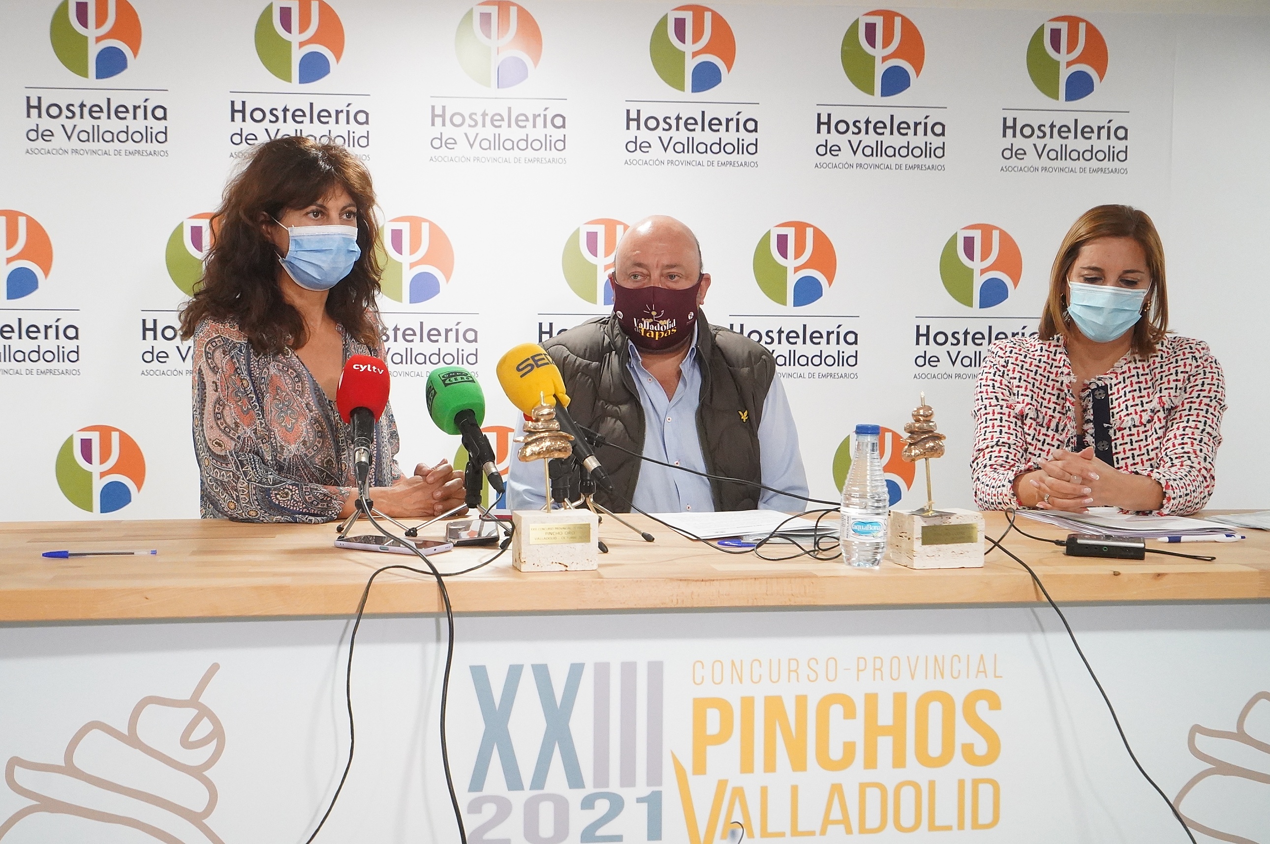 La concejala de Cultura y Turismo, Ana Redondo; el presidente de la Asociación de Empresarios de Hostelería de Valladolid, Jaime Fernández; y la diputada de Promoción Agroalimentaria y Consumo, Inmaculada Toledano; han presentado la XXIII edición del Concurso Provincial de Pinchos que se celebrará entre el 28 de septiembre y el 3 de octubre. La final tendrá lugar el lunes día 4 en la Escuela Internacional de Cocina "Fernando Pérez".