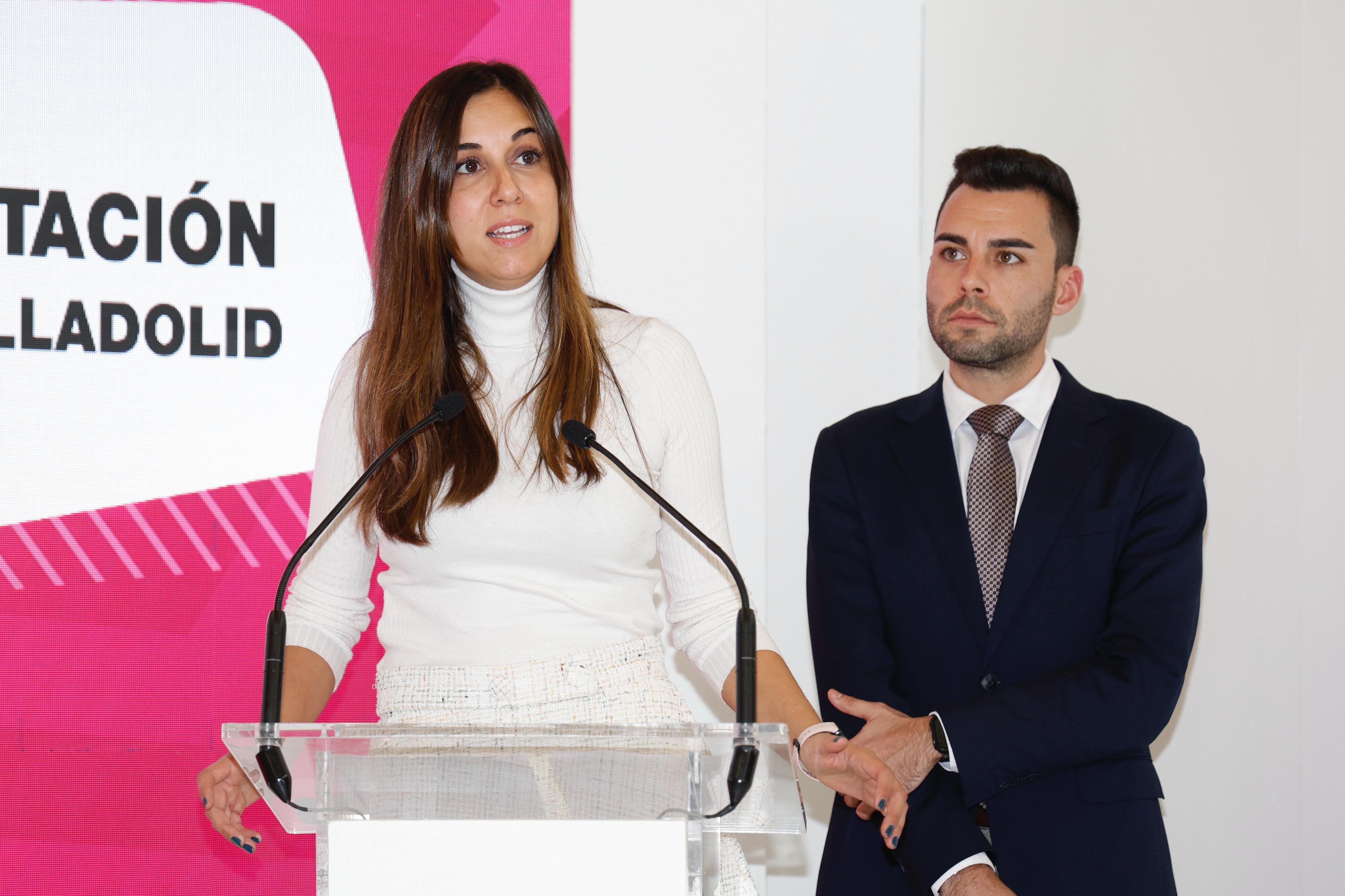 La concejala de Turismo, Eventos y Marca Ciudad, Blanca Jiménez Cuadrillero, y el diputado de Empleo, Desarrollo Económico y Reto Demográfico de la Diputación de Valladolid, Roberto Migallón, han presentado hoy el stand conjunto ‘Turismo Valladolid’ que lucirán ambas instituciones, durante el desarrollo de INTUR hasta el 19 de noviembre, dedicado a promocionar Valladolid como ciudad de cine.