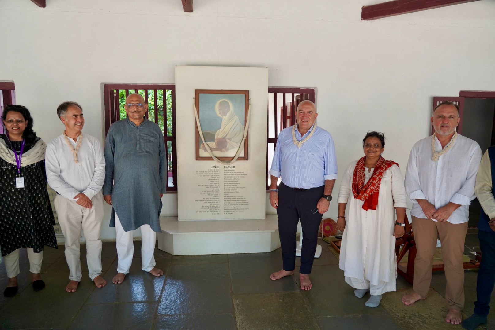 Acompañado por el director del museo, Atul Pandya, y representantes del Consejo Indio de Relaciones Culturales (ICCR), el regidor vallisoletano ha podido conocer objetos de gran valor simbólico, como la mesa de trabajo de Gandhi o la rueca con la que alentó a la autosuficiencia textil de las familias indias. La visita ha concluido con una ofrenda floral ante la estatua del Mahatma, un gesto solemne de respeto y homenaje.