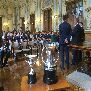 El alcalde de Valladolid, Francisco Javier León de la Riva; el concejal de Hacienda y presidente de la Fundación Municipal de Deportes, Alfredo Blanco Montero; han recibido a medidía de hoy a los jugadores, técnicos y directivos del VRAC Quesos Entrepinares, equipo que el pasado domingo se proclamó campeón de la Copa del Rey de rugby tras vencer al Club de Rugby Complutense Cisneros en los campos de "Pepe Rojo".