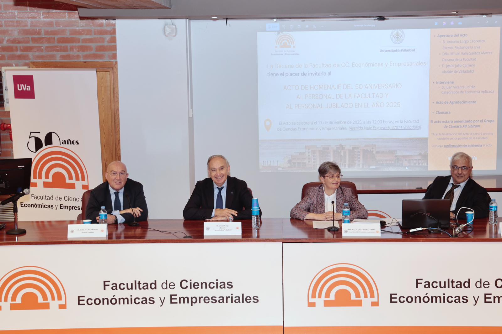 El alcalde en el acto conmemorativo del 50 aniversario de la Facultad de Ciencias Económicas y Empresariales y homenaje a todo su personal, especialmente a las personas jubiladas. Esta efeméride constituye un hito de gran relevancia en el ámbito universitario, ya que la Facultad ha sido, desde sus inicios, un centro de referencia en nuestra ciudad.