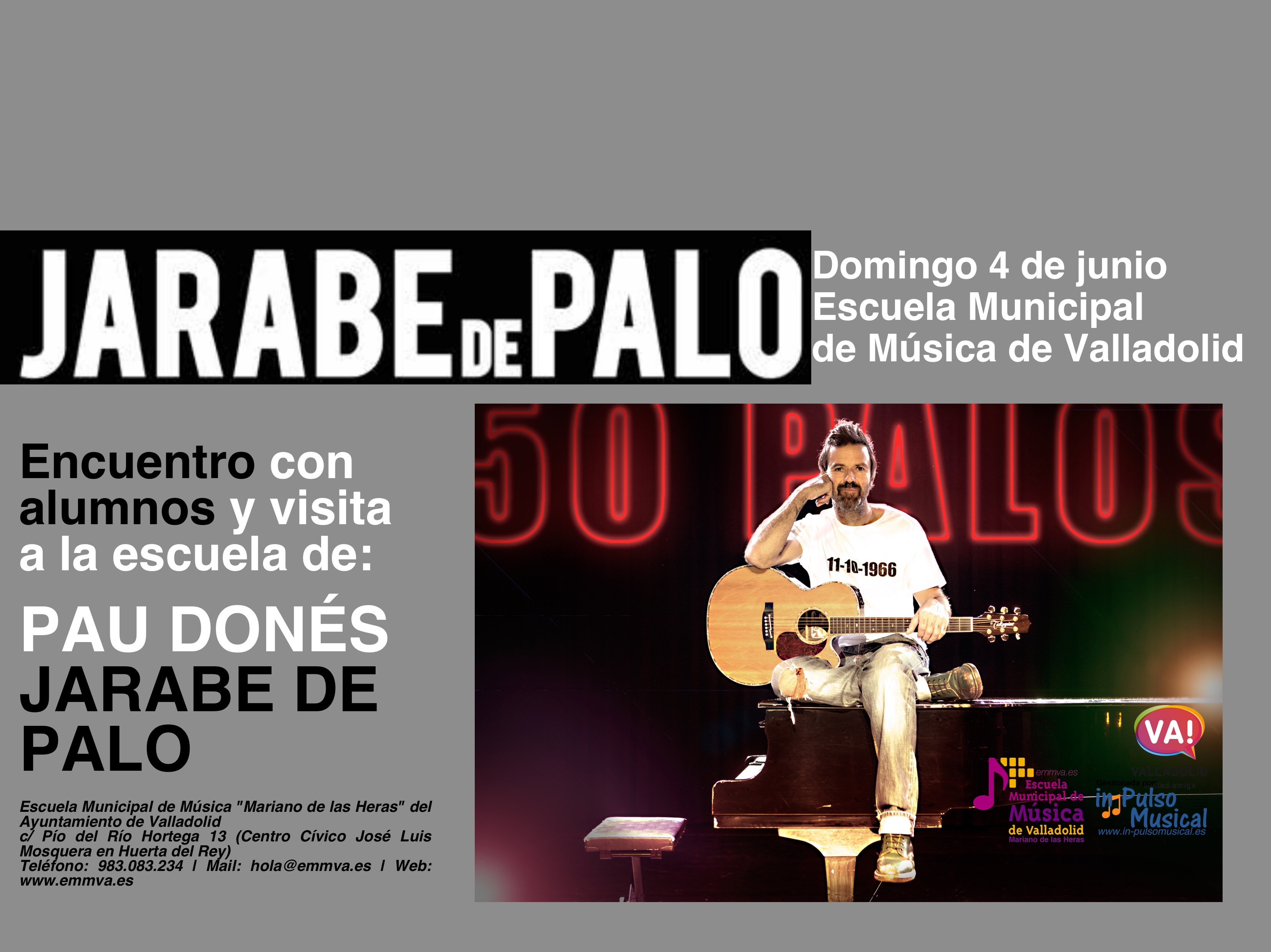 El domingo 4 de junio la Escuela Municipal de Música "Mariano de las Heras" del Ayuntamiento de Valladolid recibirá la visita de Pau Donés líder de Jarabe de Palo aprovechando su visita a la ciudad con motivo del concierto que ofrecerá esa tarde en el Auditorio...- Fecha de la noticia