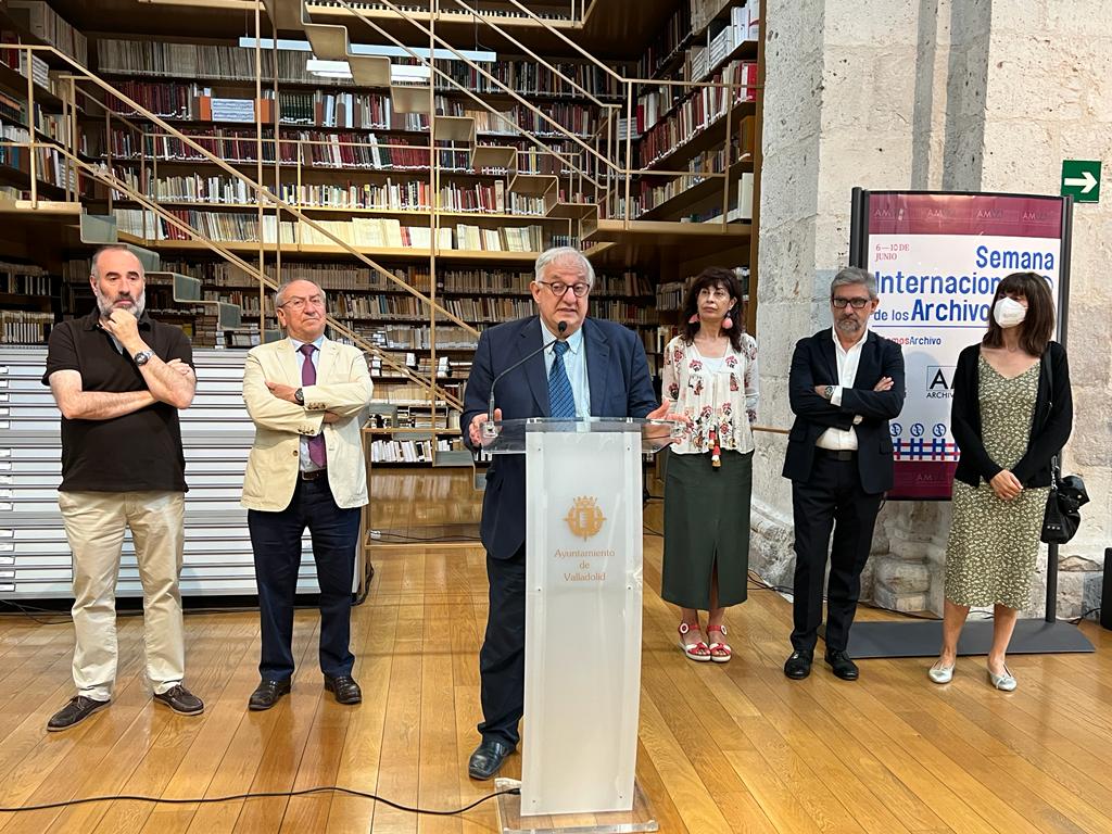 El Archivo Municipal ha acogido la presentación de las actividades programadas para la celebración de esta Semana, para lo que ha contado con la presencia de la concejala de Cultura y turismo, Ana Redondo; el subdirector General de los Archivos Estatales, Severiano Hernández Vicente; el subdelegado del Gobierno en Valladolid, Emilio Álvarez; la secretaria general de la Confederación Hidrográfica del Duero, Sofía Soto Santos; y de representantes de distintos archivos como la directora del Archivo General de Simancas, Julia Rodríguez de Diego; la directora del Archivo de la Real Chancillería, Cristina Emperador Ortega; el jefe de Servicio de Archivos de la Junta de Castilla y León, Carlos Travesí de Diego; la directora del archivo de las Cortes de Castilla y León, Paloma Vaquero, el director del Archivo Histórico Provincial, Ángel Laso; la directora del archivo de la Confederación Hidrográfica del Duero, Inmaculada Rodríguez; la directora del Archivo de la Universidad de Valladolid, Ángeles Moreno; Paulino González Galindo, director del Archivo de la Catedral de Valladolid además del director del Archivo Municipal de Valladolid, Eduardo Pedruelo.
