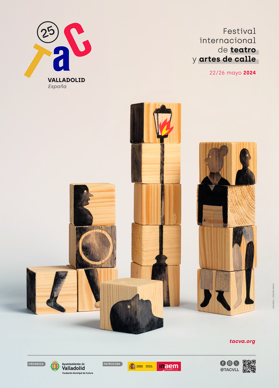 El lema ‘Mantengamos la llama’ queda reflejado en el cartel presentado también hoy, que es obra de los artistas Ana Nan y Chucho Nieto, en el que a través de una composición de cubos de madera representan de forma metafórica los principales elementos del TAC como son el público, los artistas, la calle...