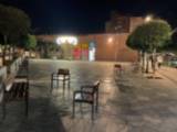 Bajo las marquesinas se han colocado agrupaciones de bancos y sillas con reposabrazos y altura adecuada para dotar a la plaza de una zona estancial, al igual que en la Plaza de la Danza, con sombra en ciertas horas del día que se verá muy reforzada cuando los árboles hayan alcanzado su porte definitivo al situarse éstos al sur de los bancos.
