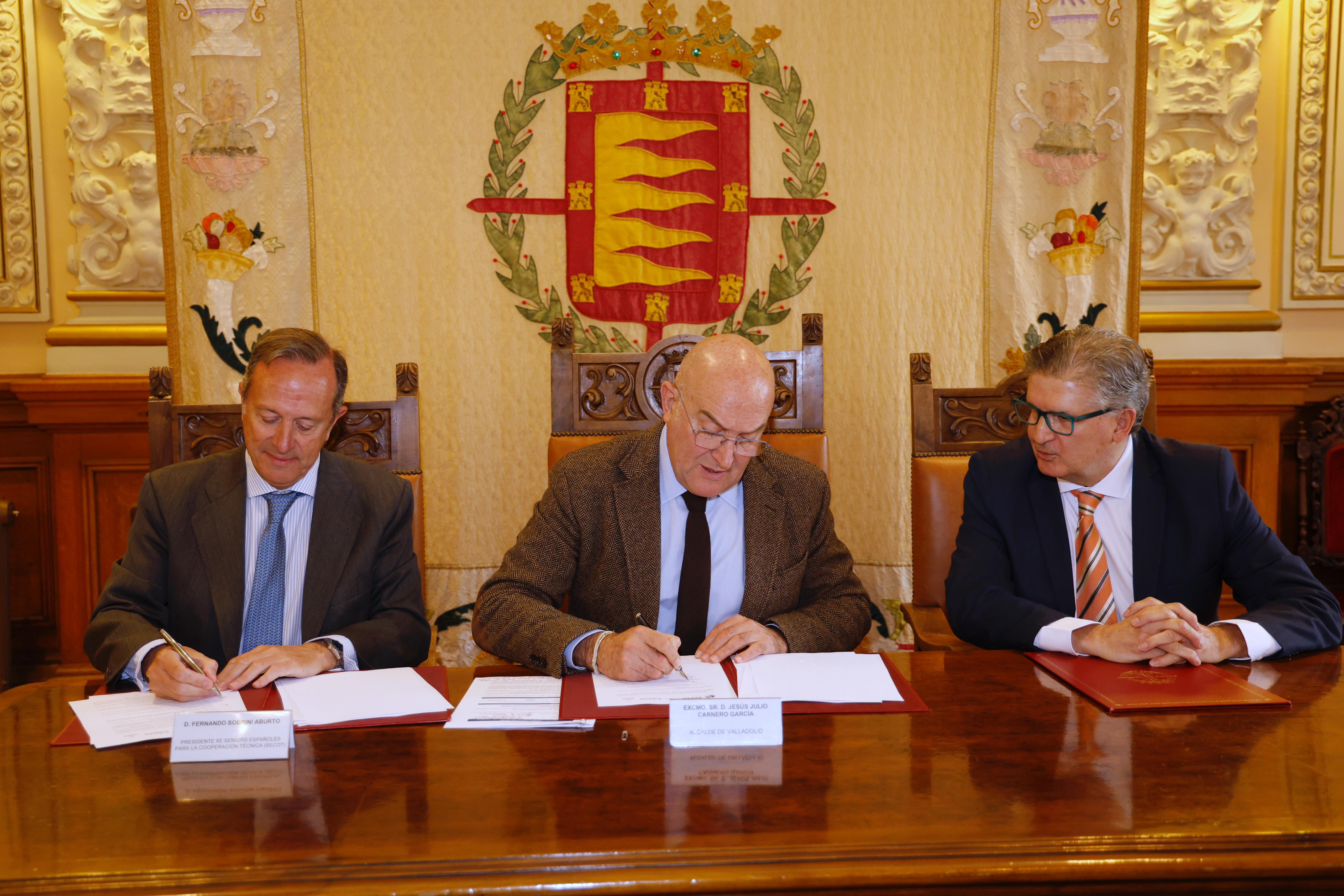 Fomentar el espíritu emprendedor, el desarrollo económico de la ciudad de Valladolid y la creación de empresas son algunos de los objetivos clave de este convenio de colaboración que han firmado hoy el alcalde del Ayuntamiento de Valladolid, Jesús Julio Carnero, y el presidente de Séniors Españoles para la Cooperación Técnica (SECOT), Fernando Sobrini Aburto.