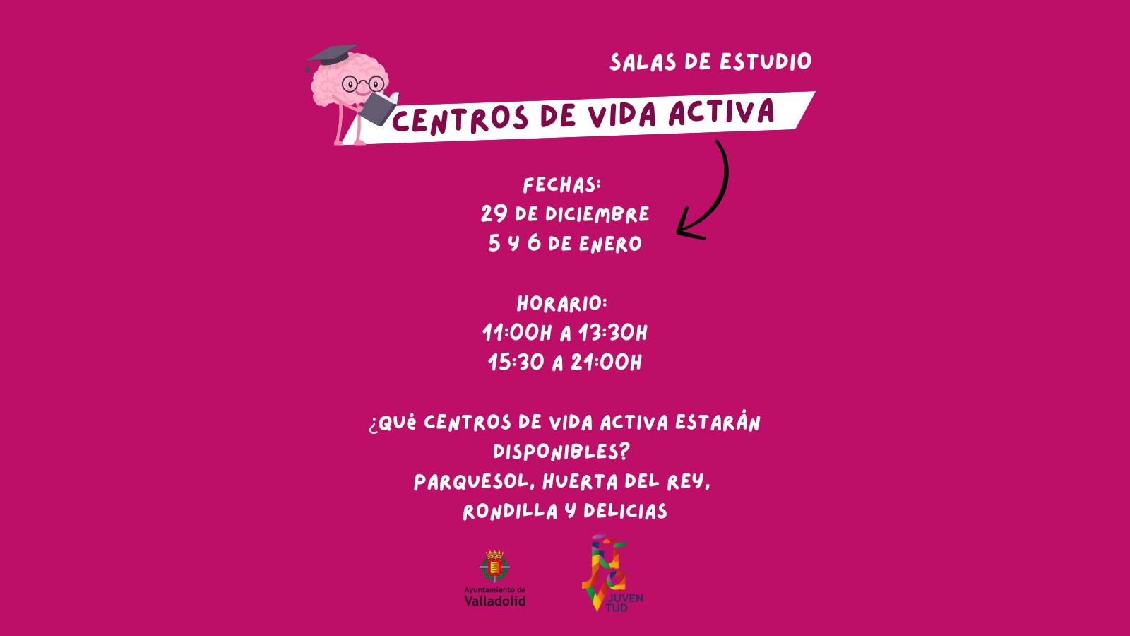 • A partir de mañana, día 23 se habilitan diferentes salas en los Centros de Parquesol, Huerta del Rey, Rondilla y Delicias.