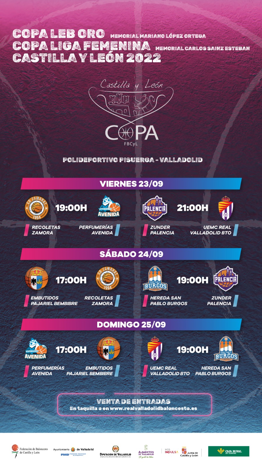Ambas Copas Castilla y León LEB ORO y LIGA FEMENINA se disputarán simultáneamente en el Pabellón Polideportivo Pisuerga de Valladolid del 23 al 25 de septiembre.