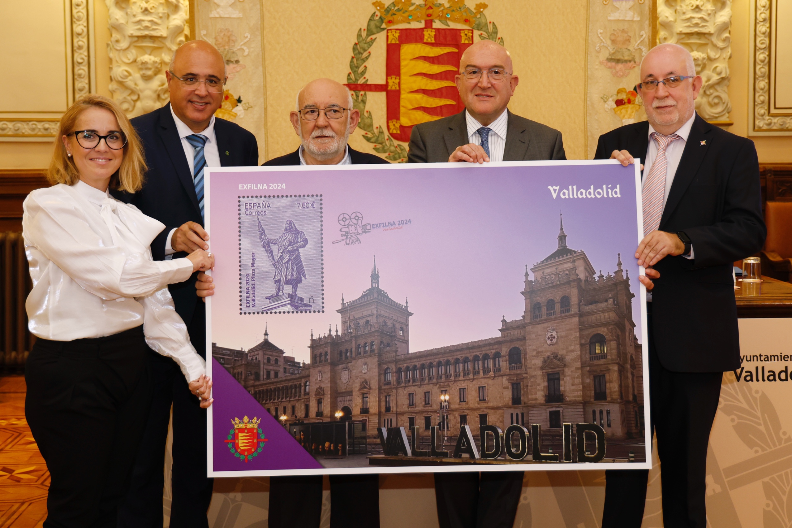 En homenaje al encuentro filatélico y a la propia ciudad de Valladolid, Correos presentó esta mañana el sello dedicado a la 62ª edición de la Exposición Nacional del Filatelia, EXFILNA. Esta emisión filatélica tiene un precio por unidad de 7'60 € y una tirada de 80.000 ejemplares y puede adquirirse durante la feria en el stand de Correos, en oficinas de Correos, a través de Correos Market o contactando con el Servicio Filatélico en el mail atcliente.filatelia@correos.com o llamando al 915 197 197.