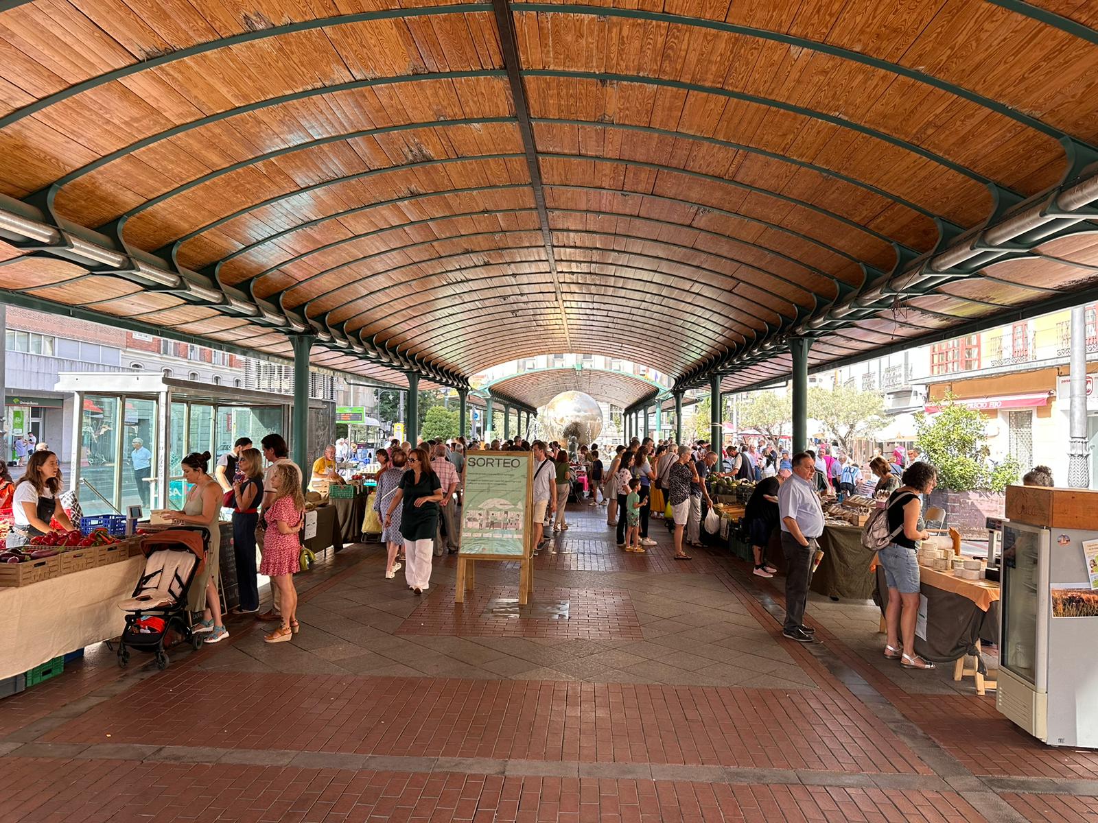 El concejal de Medio Ambiente, Alejandro García Pellitero, y el concejal de Comercio, Mercados y Consumo, Víctor Martín, han visitado hoy el Ecomercado de la Plaza de España, en el que, con motivo de la Feria y Fiestas de la Virgen de San Lorenzo y como parte del programa de dinamización de este espacio, se ha celebrado una gymkhana popular.