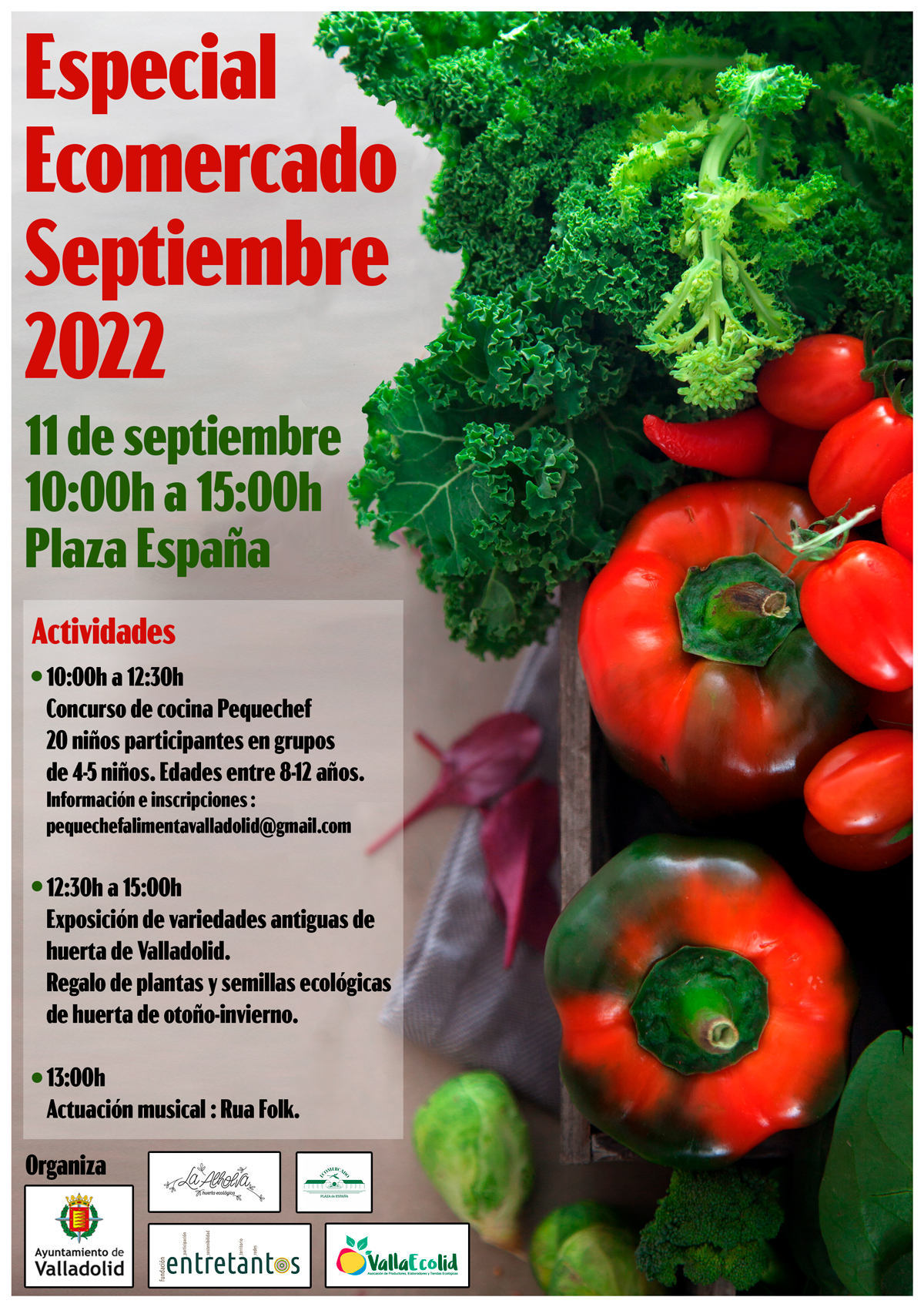 A las 10 de la mañana comienza el primer concurso Pequechef, en el que varios grupos de niños y niñas deberán sacar adelante una receta realizada exclusivamente con productos a la venta en el Ecomercado. Pueden participar, de forma gratuita, niñas y niños de entre 8 y 12 años previa inscripción en el correo pequechefalimentavalladolid@gmail.com