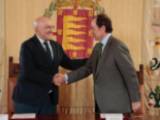 El alcalde de Valladolid, Jesús Julio Carnero, y el presidente de la Fundación Iberdrola EspañaEste enlace se abrirá en una ventana nueva., Jaime Alfonsín, han suscrito esta mañana, en presencia del delegado de Iberdrola en Castilla y León, Miguel Calvo, un convenio de colaboración para dotar de una nueva iluminación ornamental exterior a la Casa Consistorial, uno de los edificios más emblemáticos de la ciudad, que supone la renovación integral de luminarias y cableado.