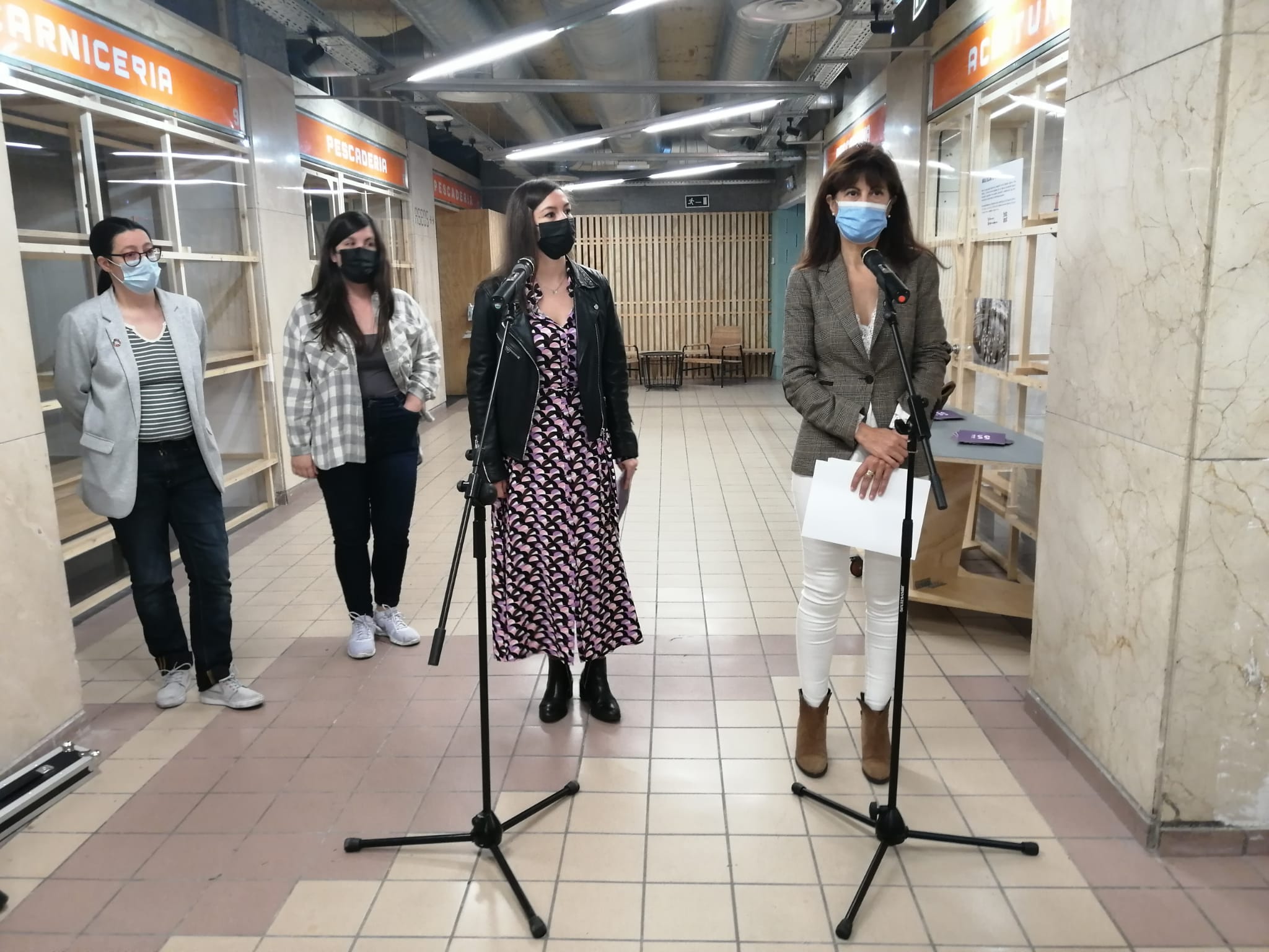 La concejala de Cultura y Turismo, Ana Redondo; junto con la coordinadora de Galerías VA, María Mozo; y varios residentes han presentado las primeras actividades y talleres para público que se realizarán en el mes de octubre en el Centro de Creación Galerías VA, abierto en las antiguas Galerías de alimentación López Gómez.