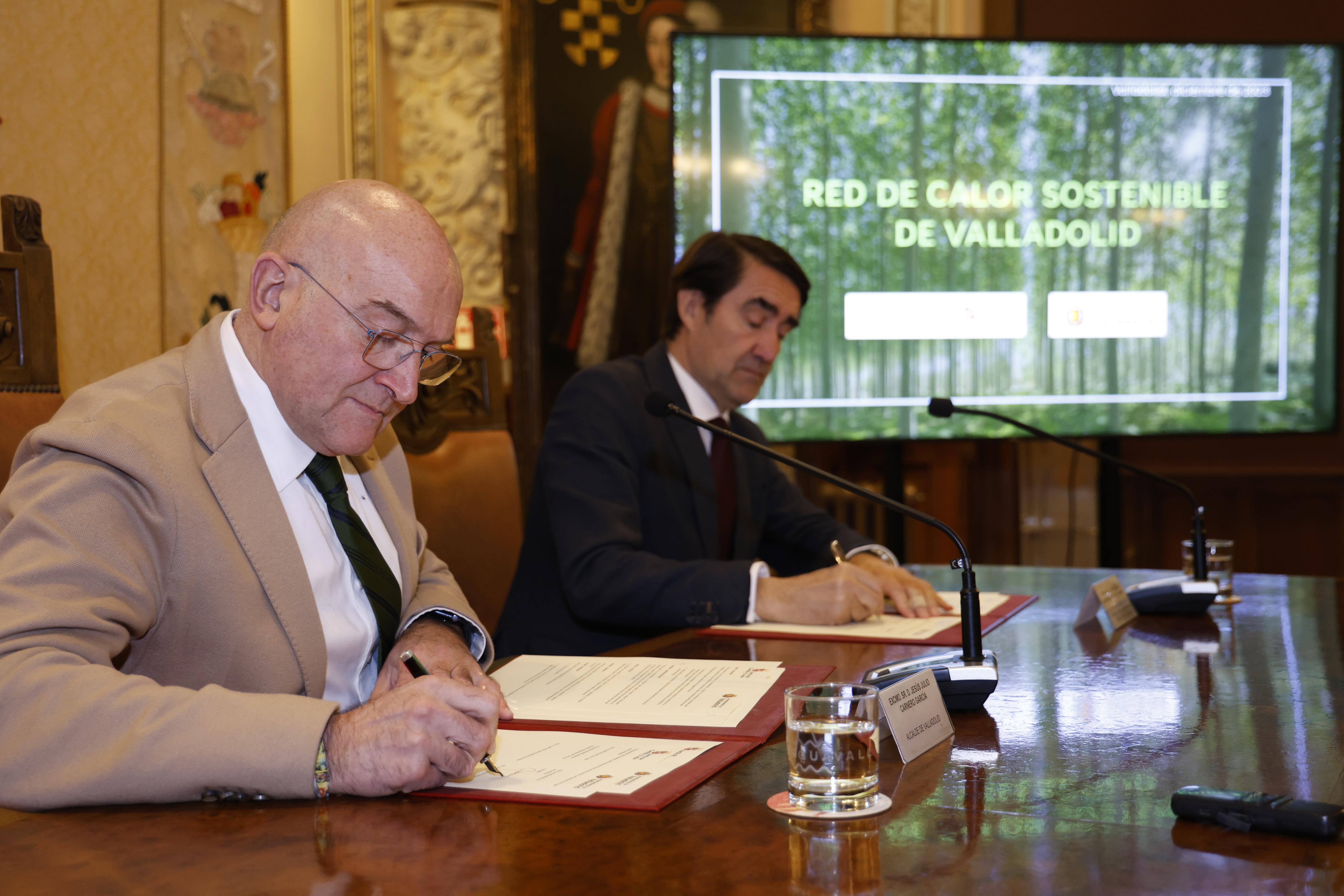 Esta firma del protocolo de actuación de la Red de Calor de Valladolid establece la colaboración entre la Consejería de Medio Ambiente, Vivienda y Ordenación del Territorio y el Ayuntamiento de Valladolid para desarrollar una red que abastezca a la ciudad de manera sostenible a través de la biomasa.