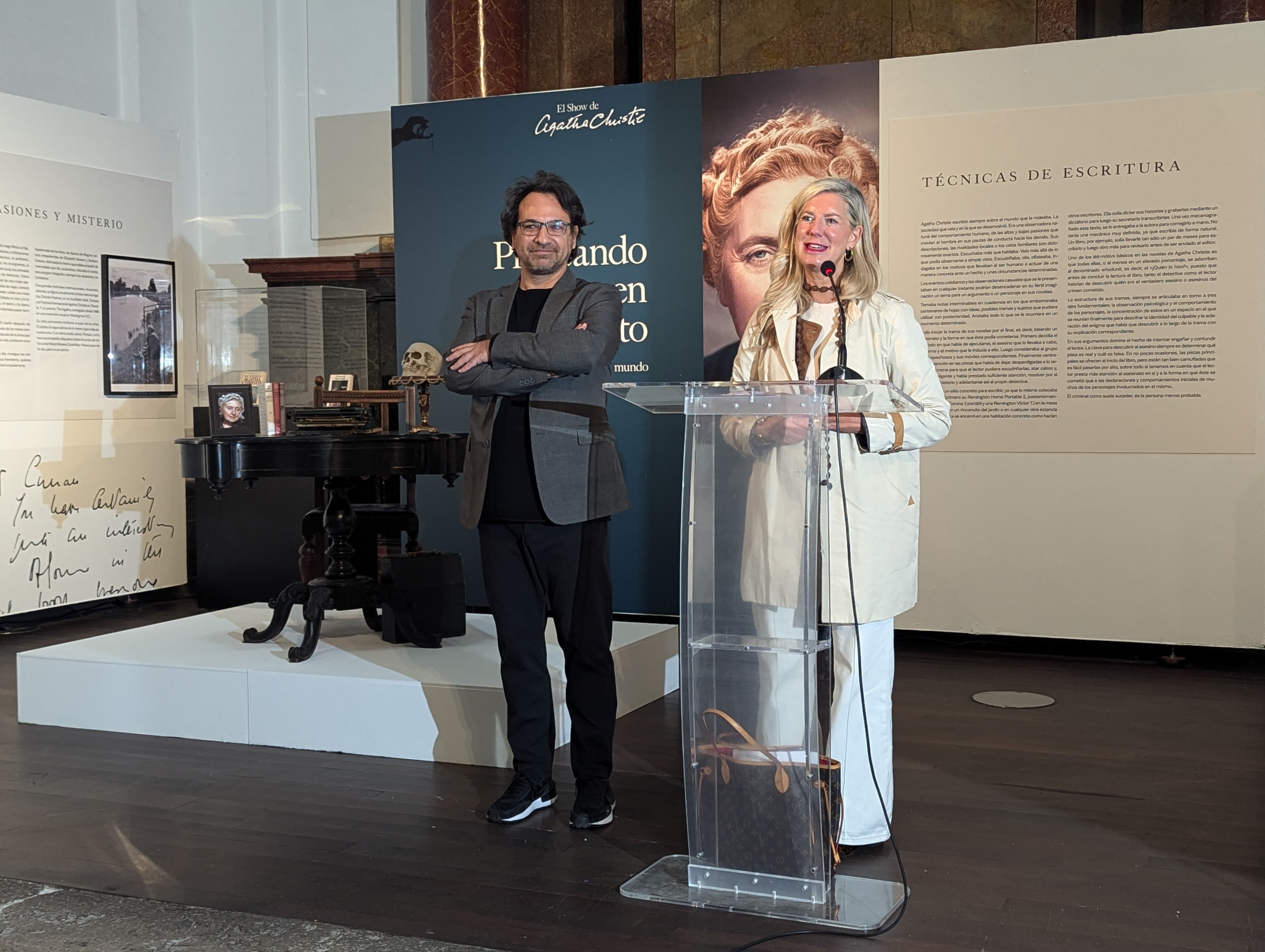 La concejala de Educación y Cultura, Irene Carvajal, y el codirector de Contemporánea, Mario Martín, han presentado esta mañana la muestra ‘El show de Agatha Christie’, una retrospectiva sobre la vida y la obra de la célebre autora británica con la que la Sala Municipal de Exposiciones de Las Francesas – Fundación Municipal de Cultura (FMC) se suma al ambiente literario que vivirá la ciudad en las próximas semanas con la Feria del Libro de Valladolid.